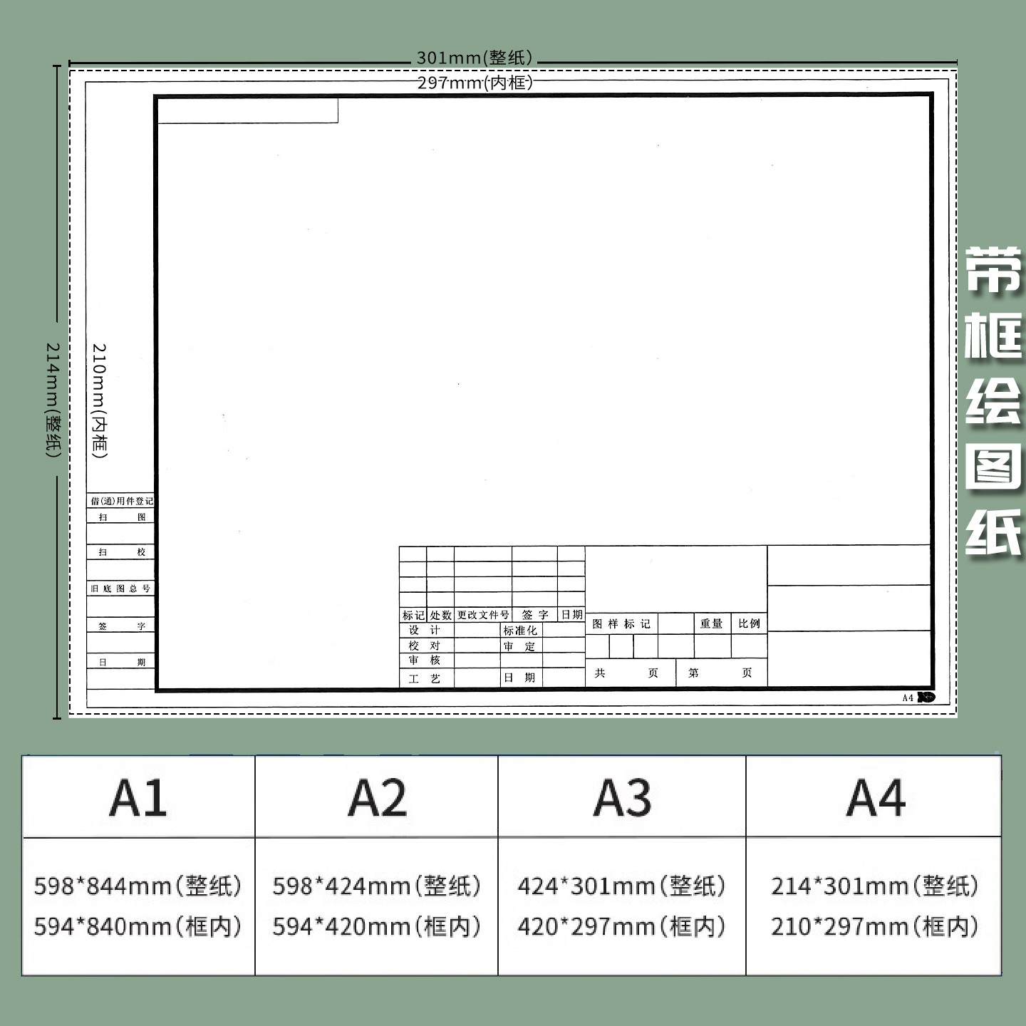 a3有框绘图纸工程制图纸带框a4a2建筑绘图纸快题纸机械制图180g