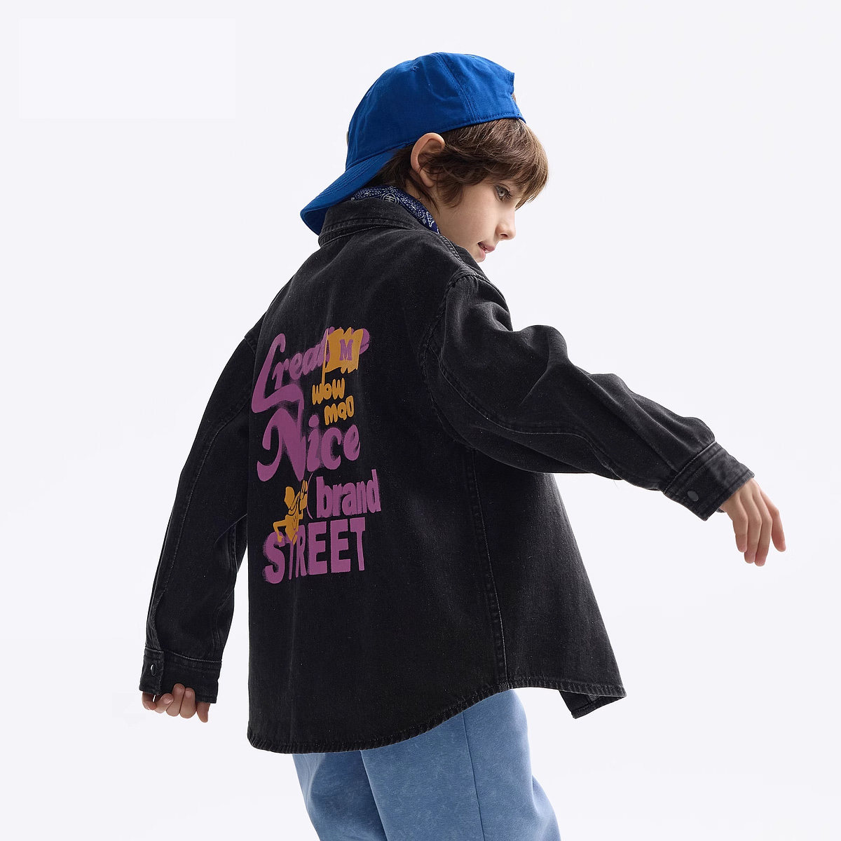 MQD童装男童长袖衬衫2025春装新款宝宝衬衣儿童翻领牛仔外