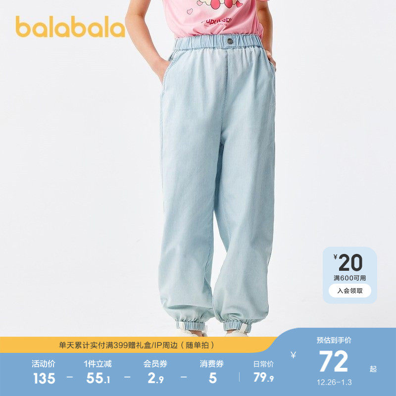 巴拉巴拉儿童牛仔裤女童裤子夏季薄款中大童长裤牛仔防蚊裤潮复古