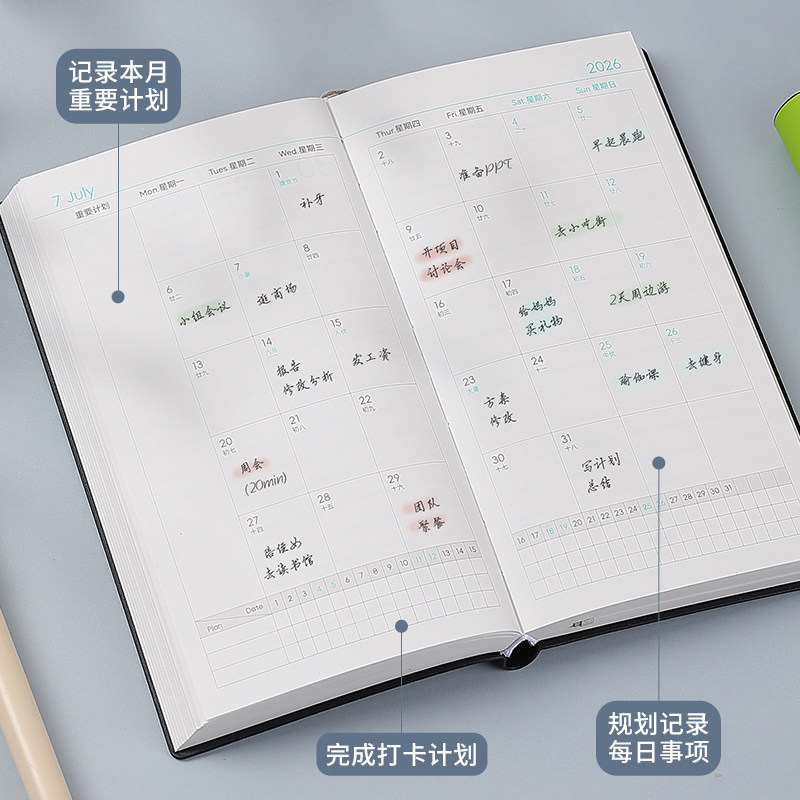2026年日程本年历每日计划本48K软皮随身本小本子小号便携日记手账口袋商务日历工作笔记本记事本子批发