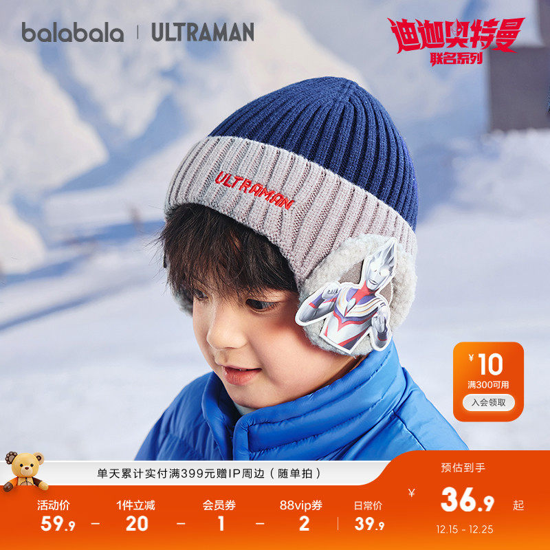 【奥特曼IP】巴拉巴拉儿童帽子男童一体式护耳帽撞色舒适保暖时尚