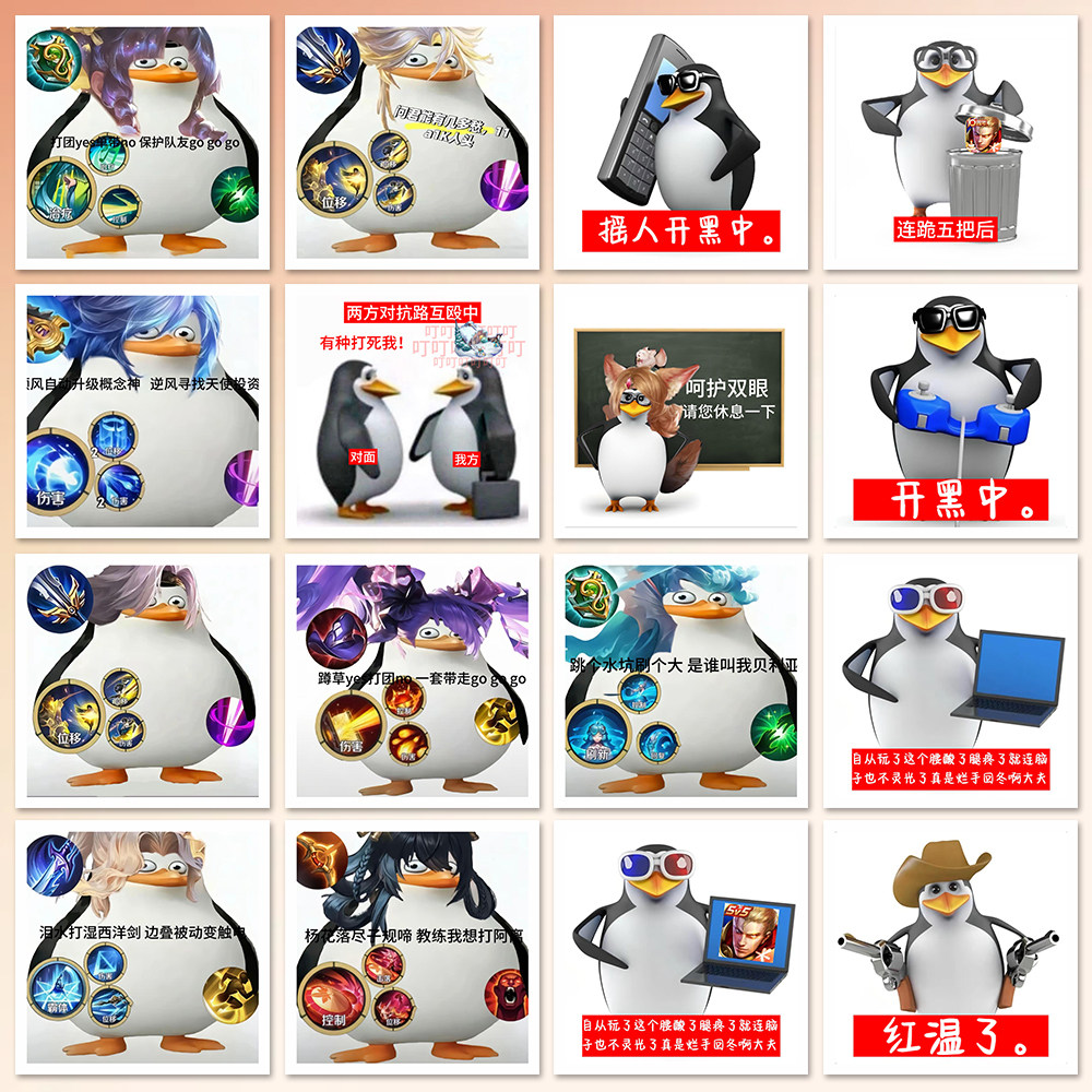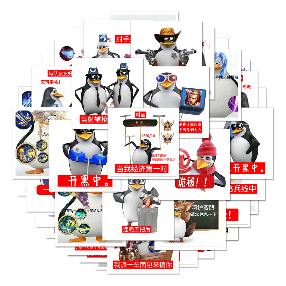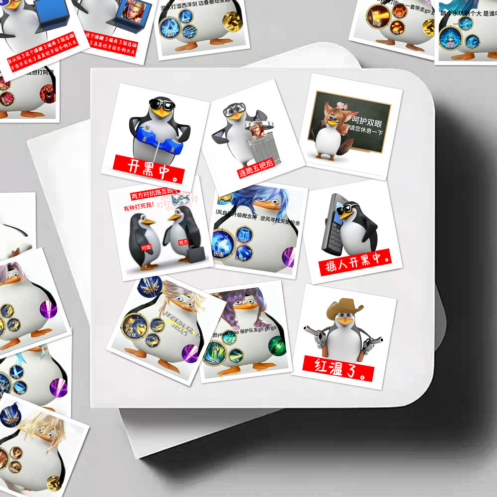 126张热门游戏王者荣耀墨镜企鹅趣味抽象表情包恶搞梗图行李箱贴
