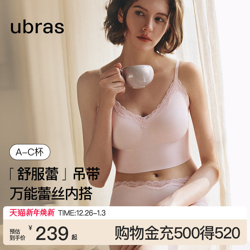 ubras无尺码舒服蕾辣妹背心性感纯欲无痕蕾丝细肩吊带文胸内衣女