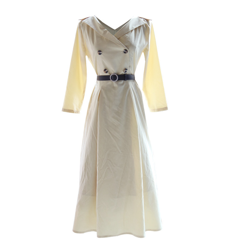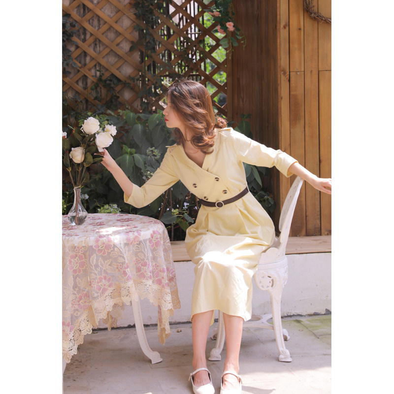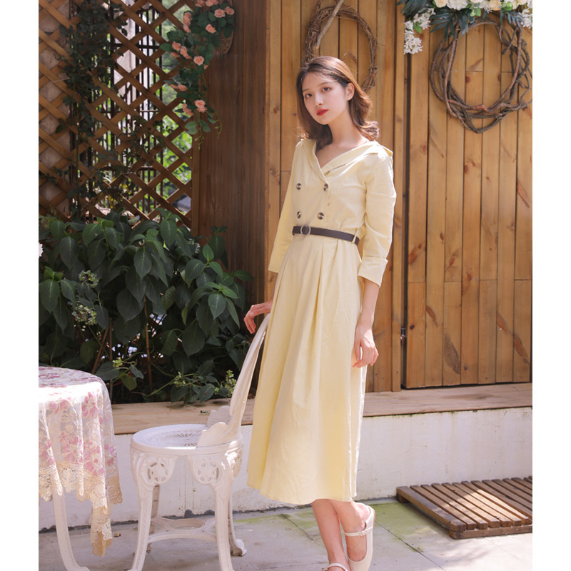 ins风春秋季女装裙复古连衣裙通勤风法式气质裙七分袖收腰中长裙