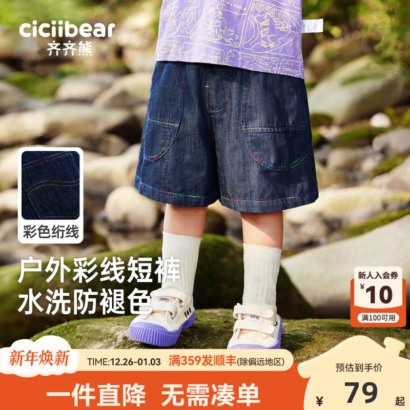 [防褪色纯棉]齐齐熊男童牛仔短裤夏季薄款儿童快干衣宝宝裤子童装