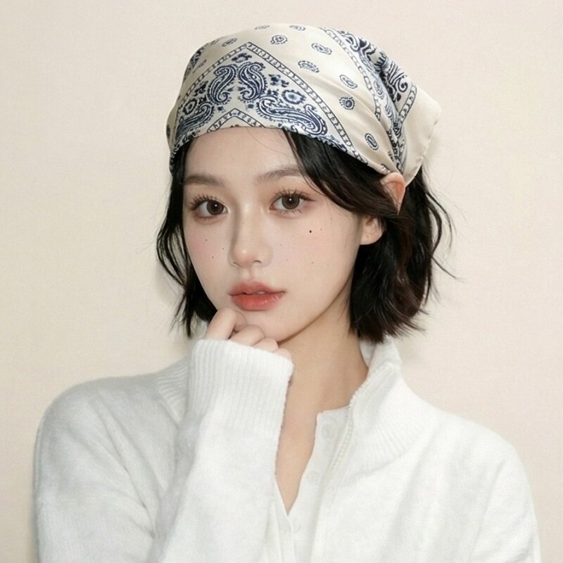 复古时髦腰果花丝巾女春夏防晒小方巾发带系脖绑包抹胸腰带包头巾