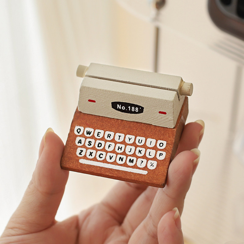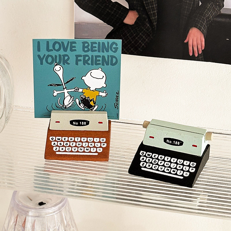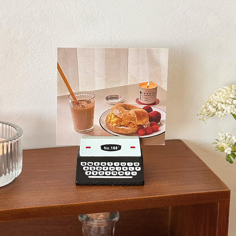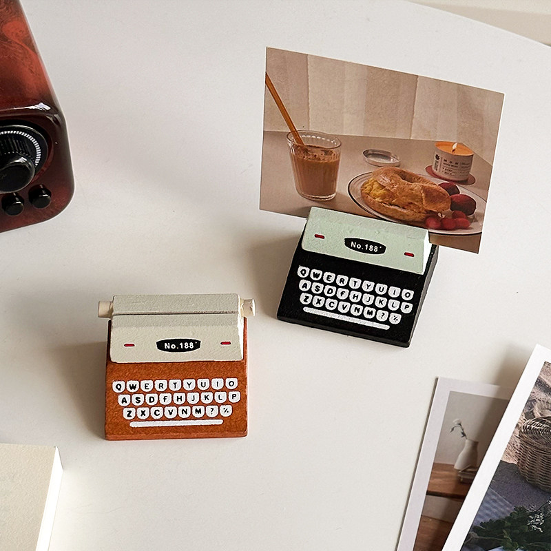 可爱复古打字机留言夹装饰小摆件桌面卡片照片底座咖啡便签夹立式