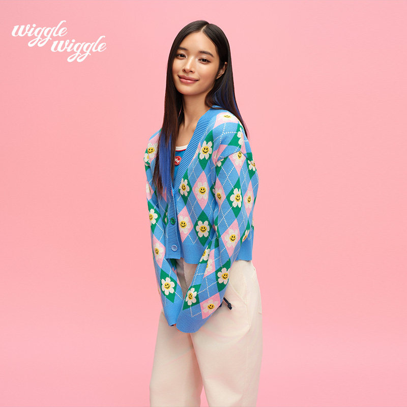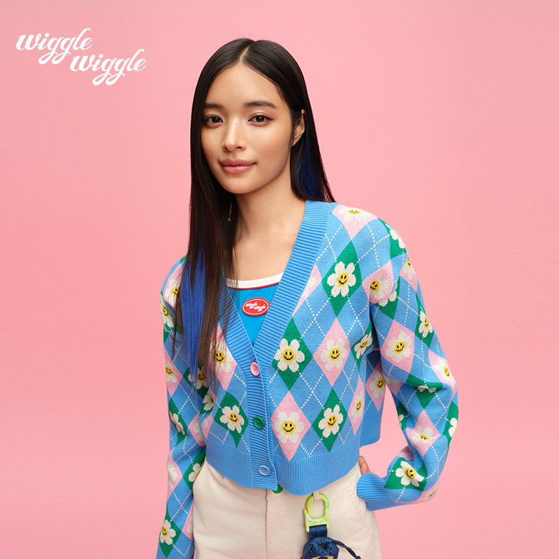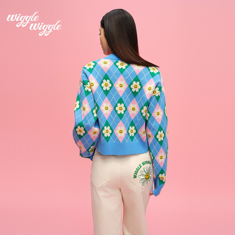 【限时75折】wigglewiggle26年笑脸花小香风减龄毛衣开衫上衣女款