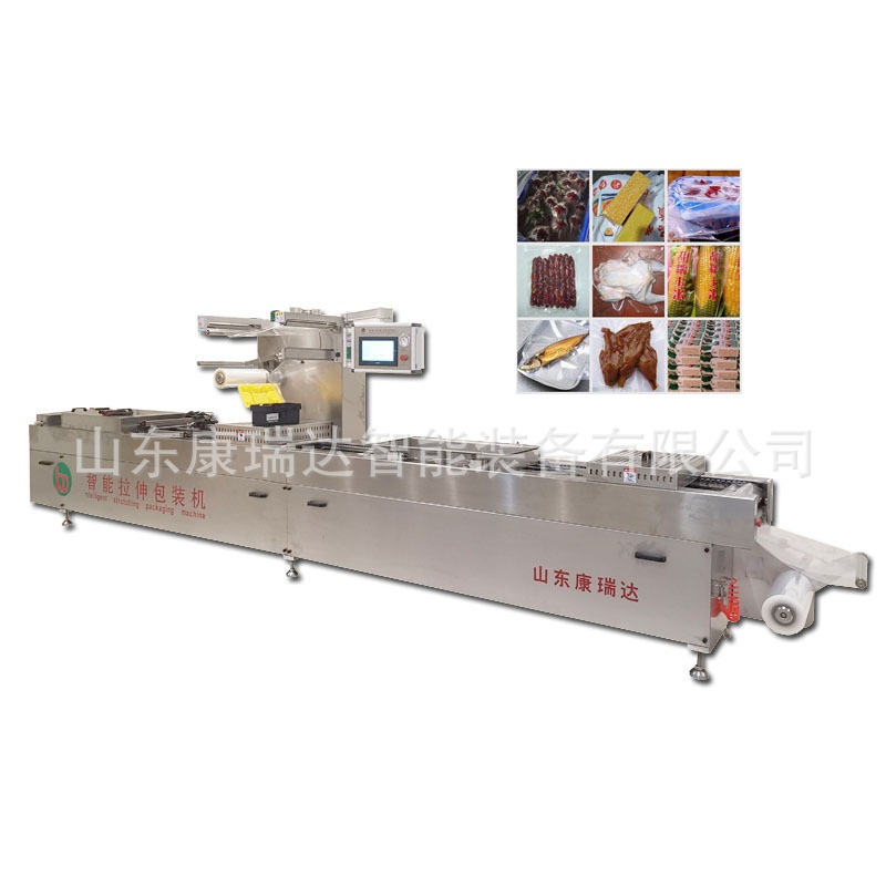 全自动拉伸膜包装机 鱼丸真空包装机 鸡翅商用连续式真空封口设备