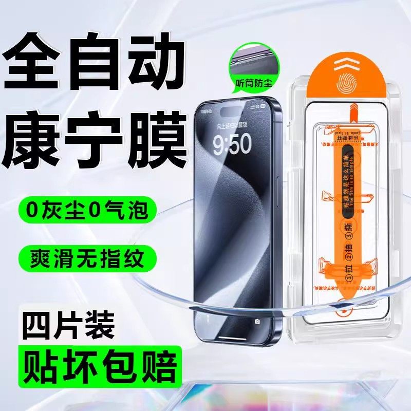 适用苹果17promax钢化膜防指纹mini全自动蓝光17Air康宁全屏贴膜神器无尘仓iphone16pro15/14Plus/13/12/11XR