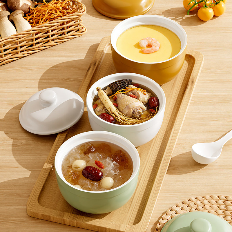 瓦罐炖盅家用隔水炖小蒸盅陶瓷带盖食品级一人份汤罐蒸鸡蛋羹炖罐