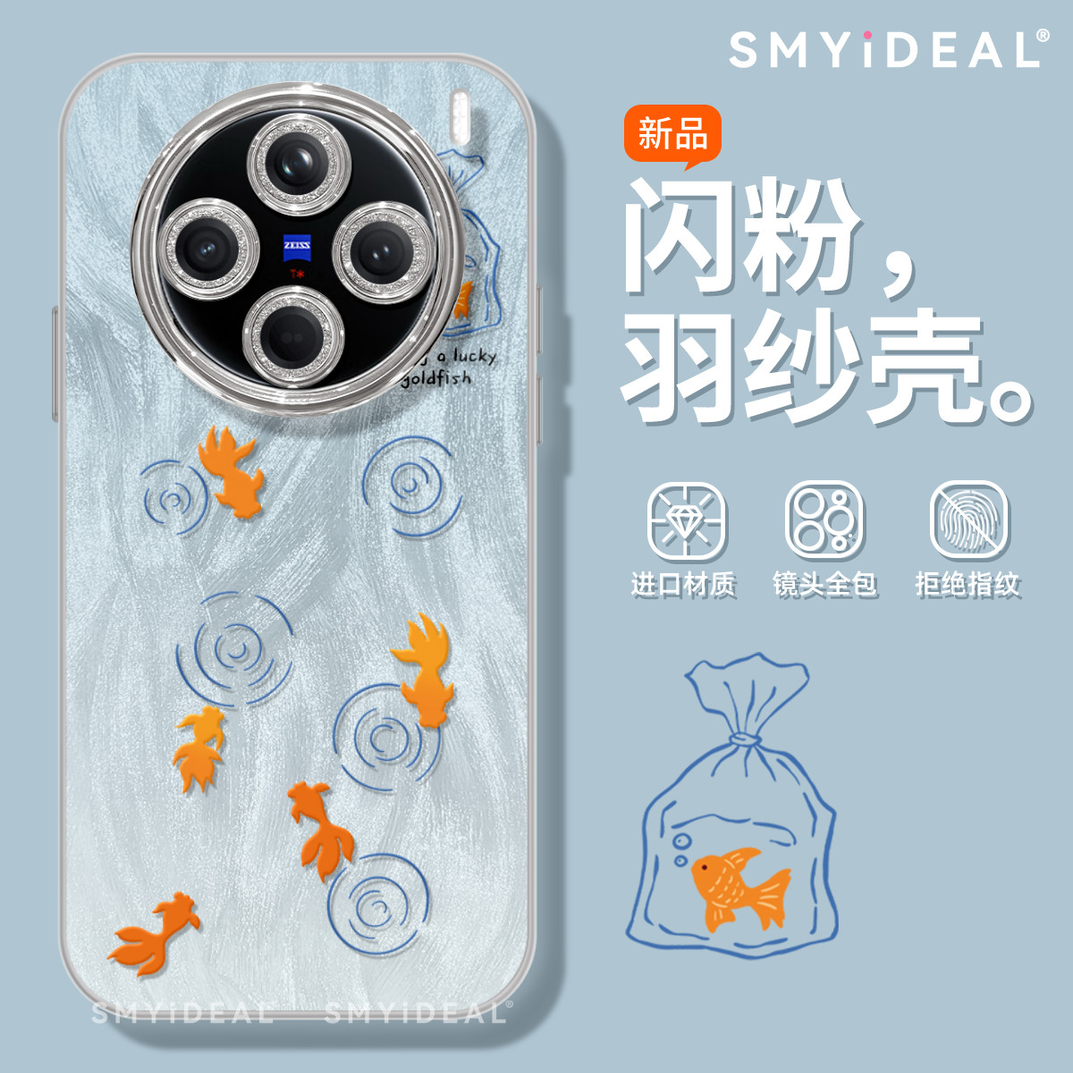 适用vivox200手机壳女款x100保护套90/80硅胶s19/18全包防摔iqoo13/12镜头膜50新款200个性vivo一排金鱼y78软