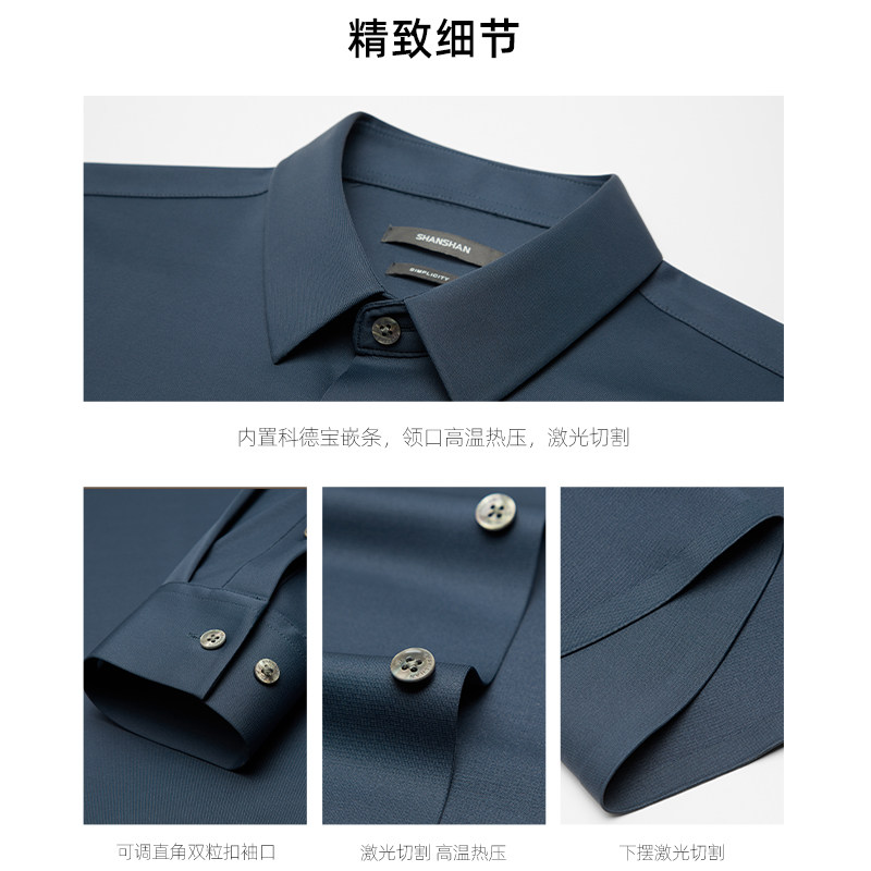 【三防免烫】SHANSHAN杉杉中年男士休闲长袖衬衫秋季桑蚕丝衬衣男