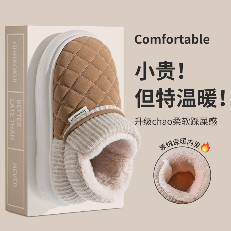 包跟棉拖鞋女冬季新款防水情侣外穿保暖防滑毛绒雪地靴男加绒高帮