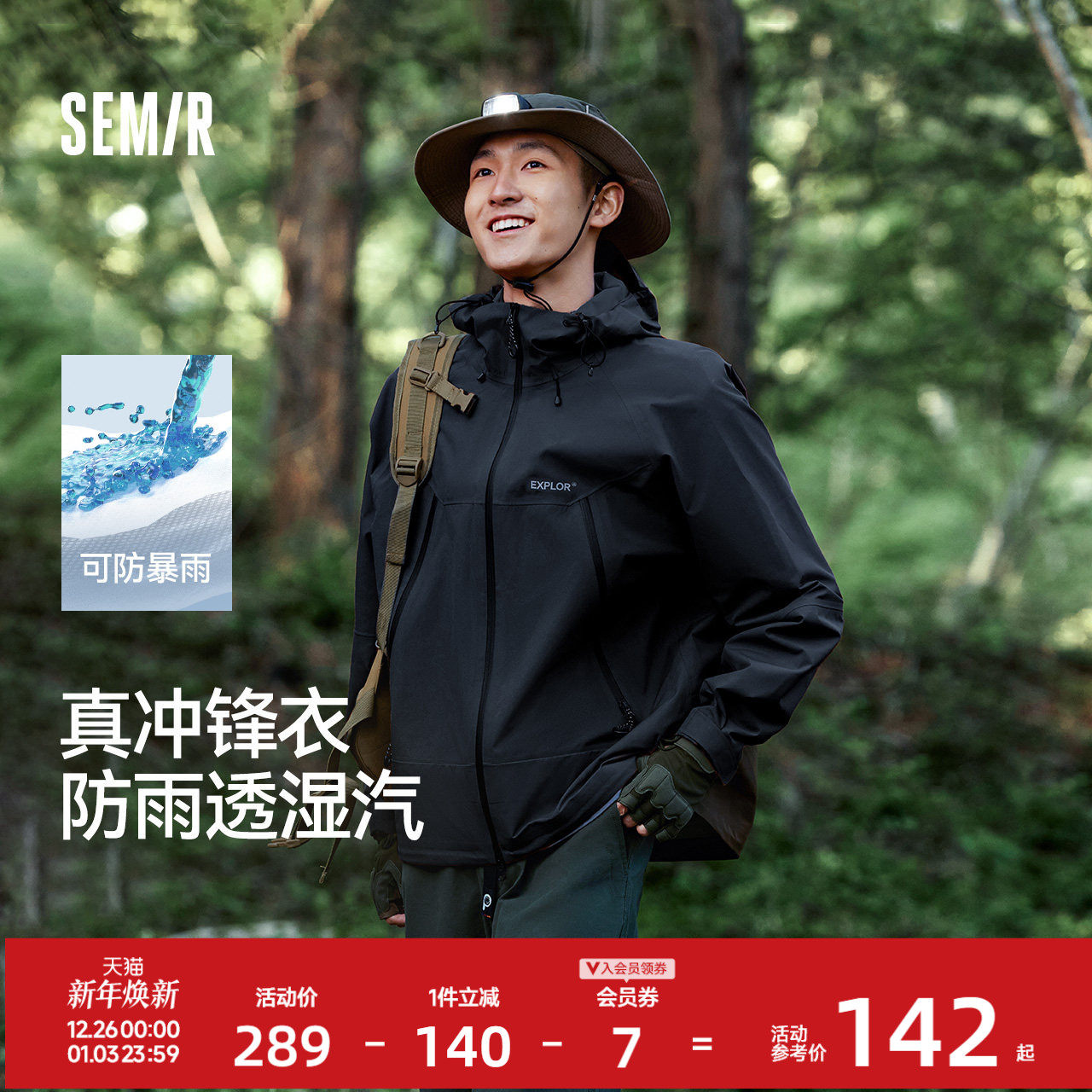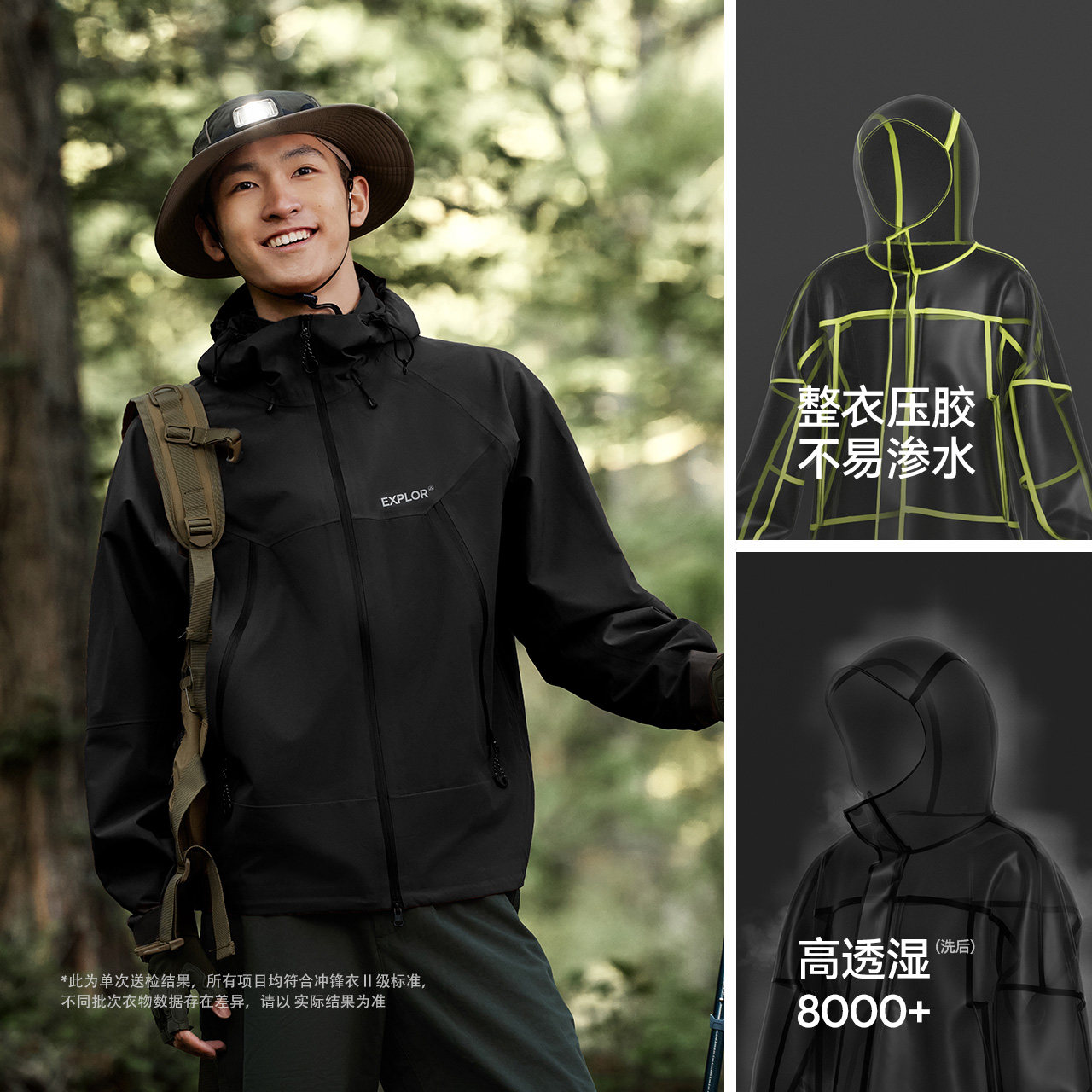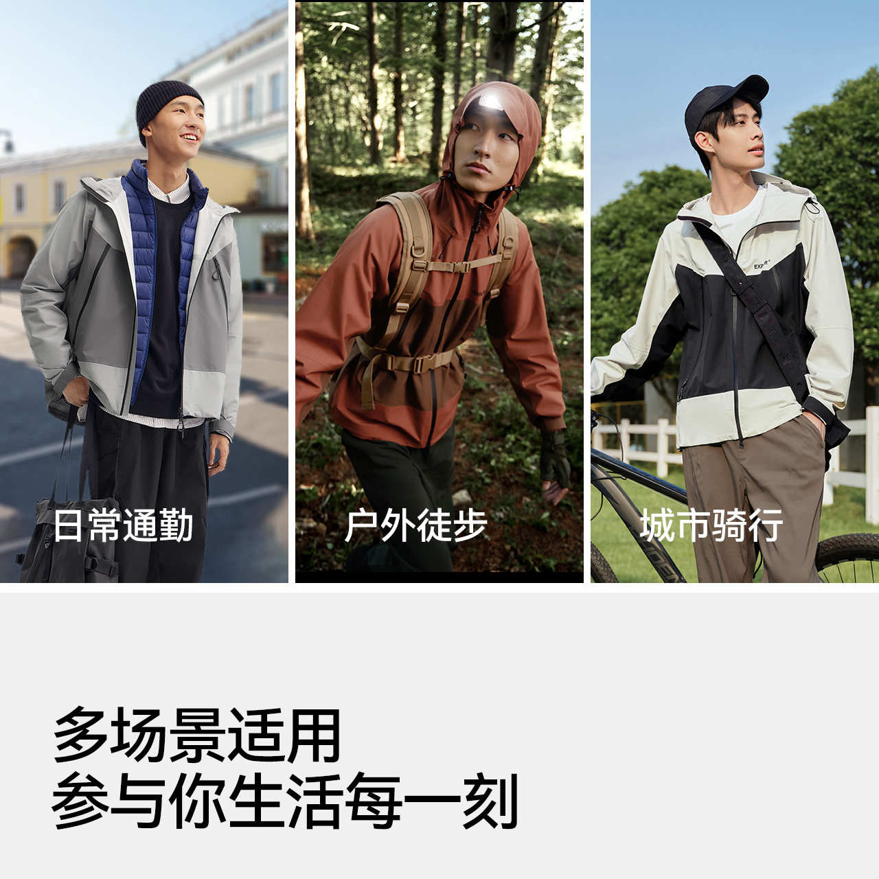 森马外套男秋季新款户外风三防情侣冲锋衣连帽夹克插肩袖上衣