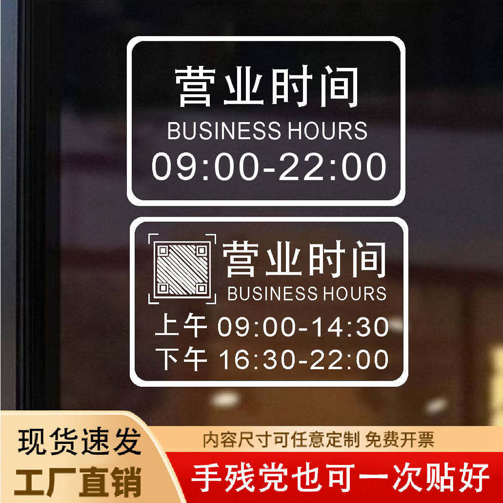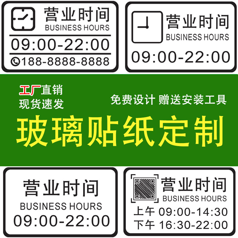 贴纸营业时间玻璃自粘装饰联系方式号码定制欢迎光临咖啡店二维码