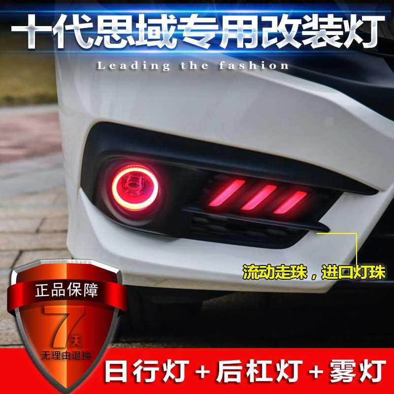 适用于16-18款本田思域日行灯十代思域专用改装LED后杠灯前雾灯