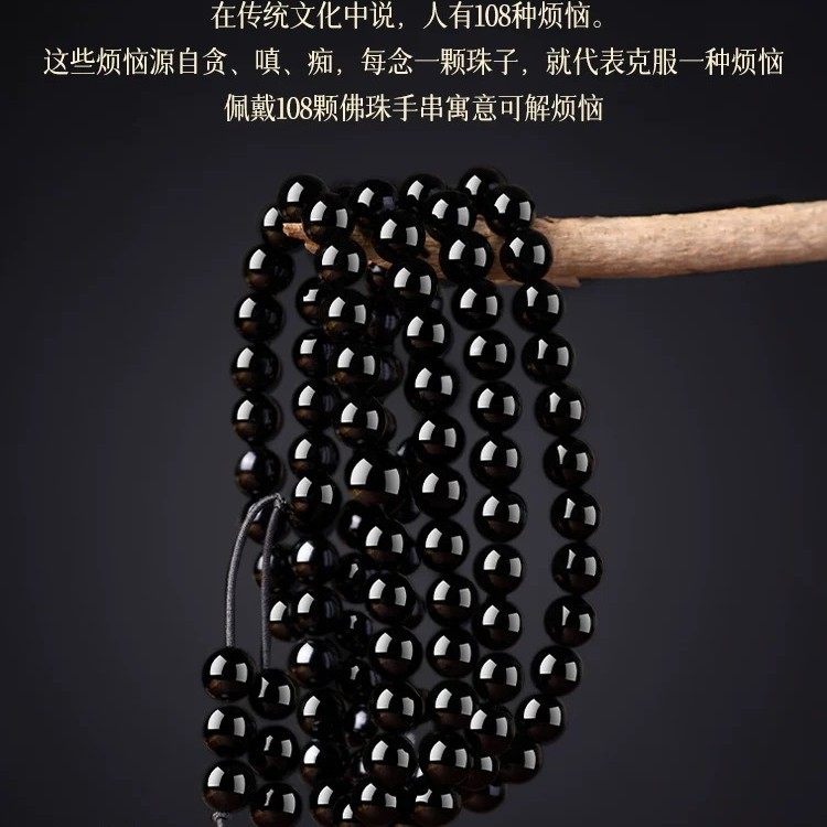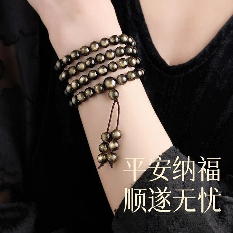 天然乌金黑曜石金耀石108颗三圈珠手串情侣款串珠项多圈念珠手链