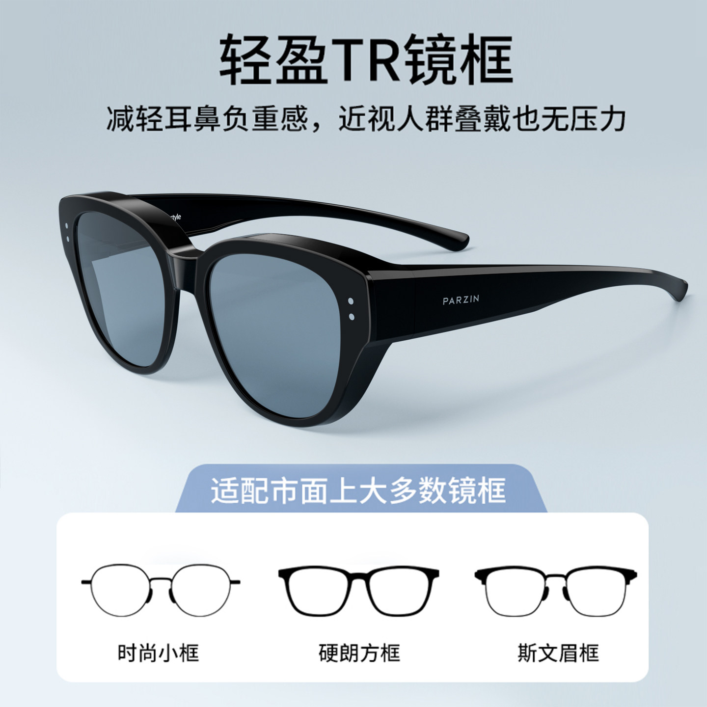 帕森偏光套镜太阳镜女轻盈TR猫眼框司机开车近视墨镜男PZ12130