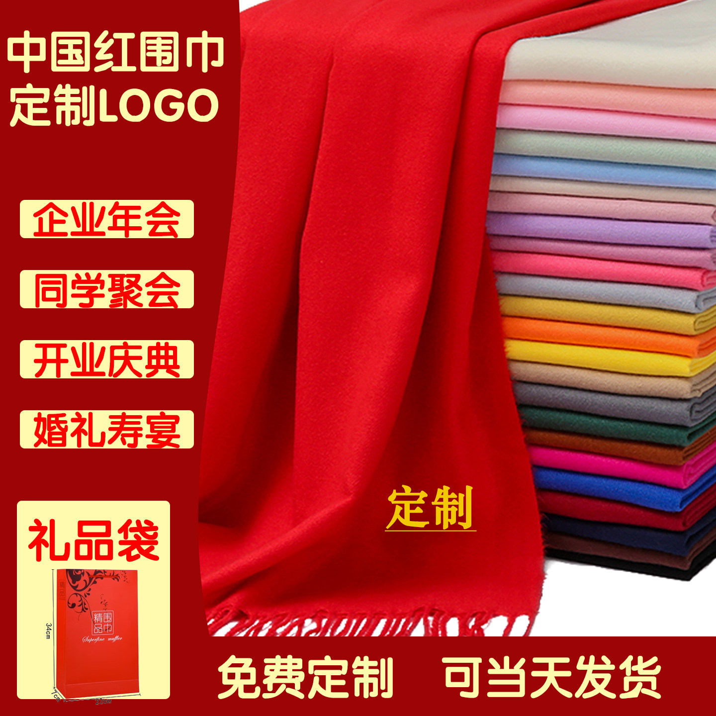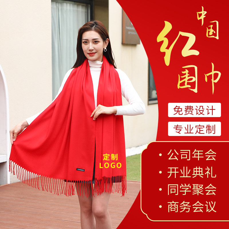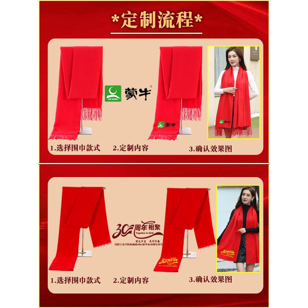 大红色围巾中国红年会定制logo印字女冬季过寿回娘家聚会披肩围脖