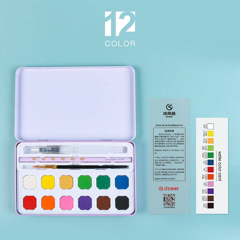 独角鹿36色固体水彩颜料初学者手绘水粉饼幼儿园儿童画画用色颜料