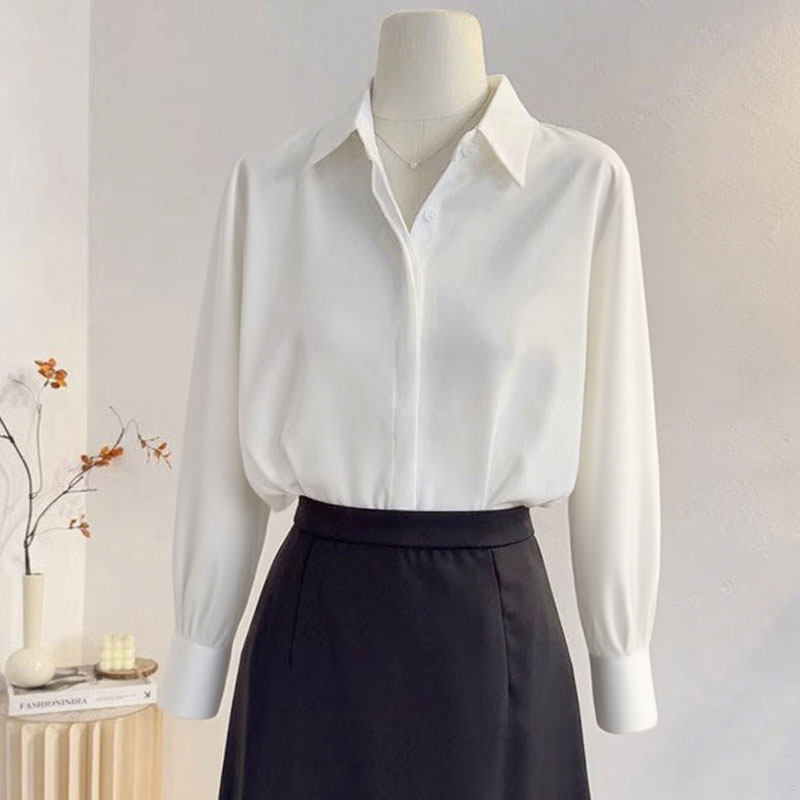 法式轻奢白色衬衫女春秋长袖高级感气质通勤大码垂感气质时尚上衣