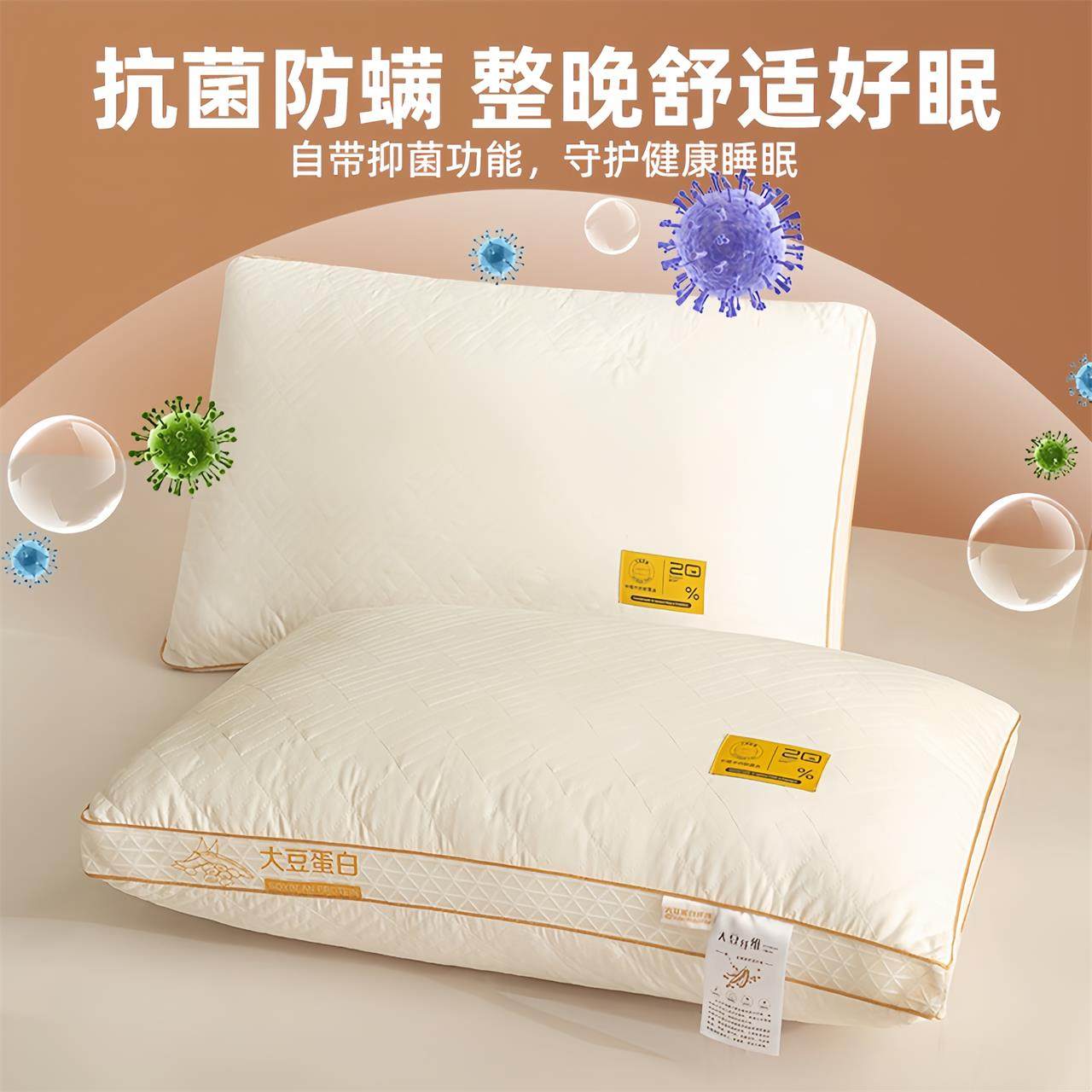 大豆纤维枕头护颈椎助睡眠成人枕头芯一对学生枕芯家用男一只装