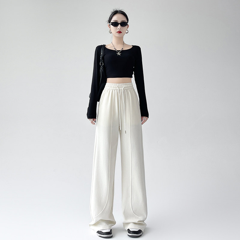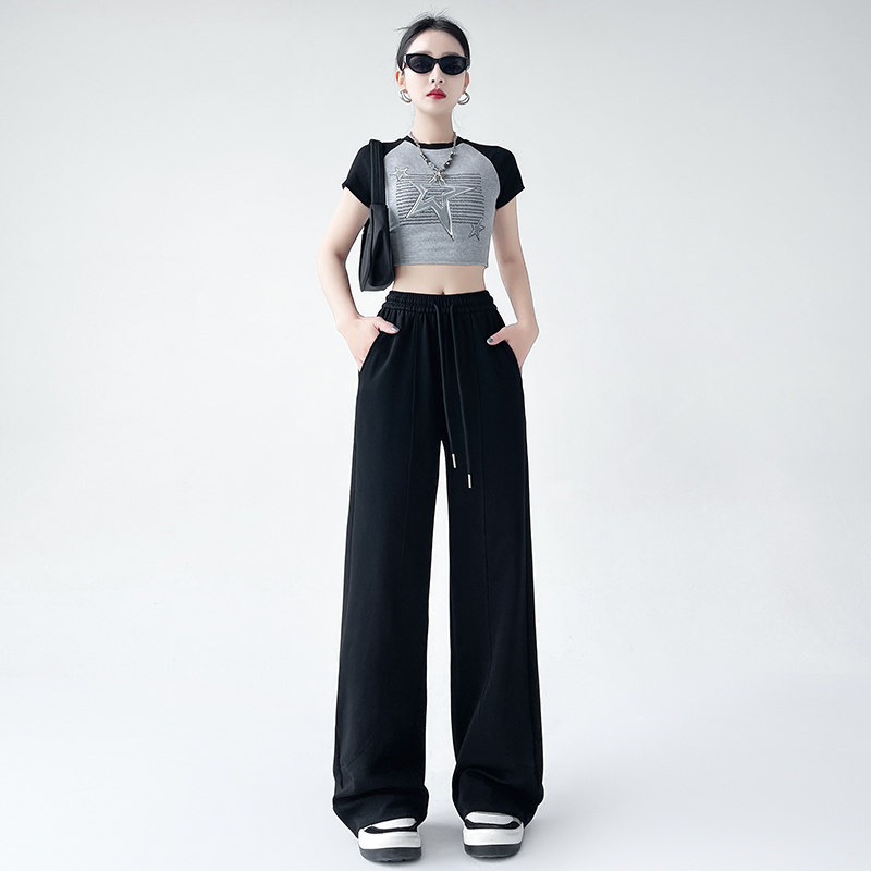 MissWiss直筒裤子女2025新款长裤休闲高腰收腹提臀黑色垂感阔腿裤