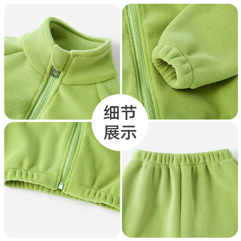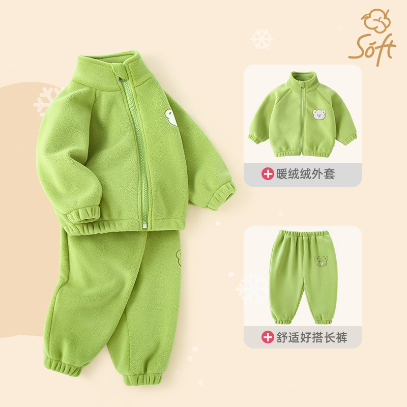 婧麒宝宝摇粒绒套装秋冬加绒保暖婴幼儿衣服男女童两件套儿童春装