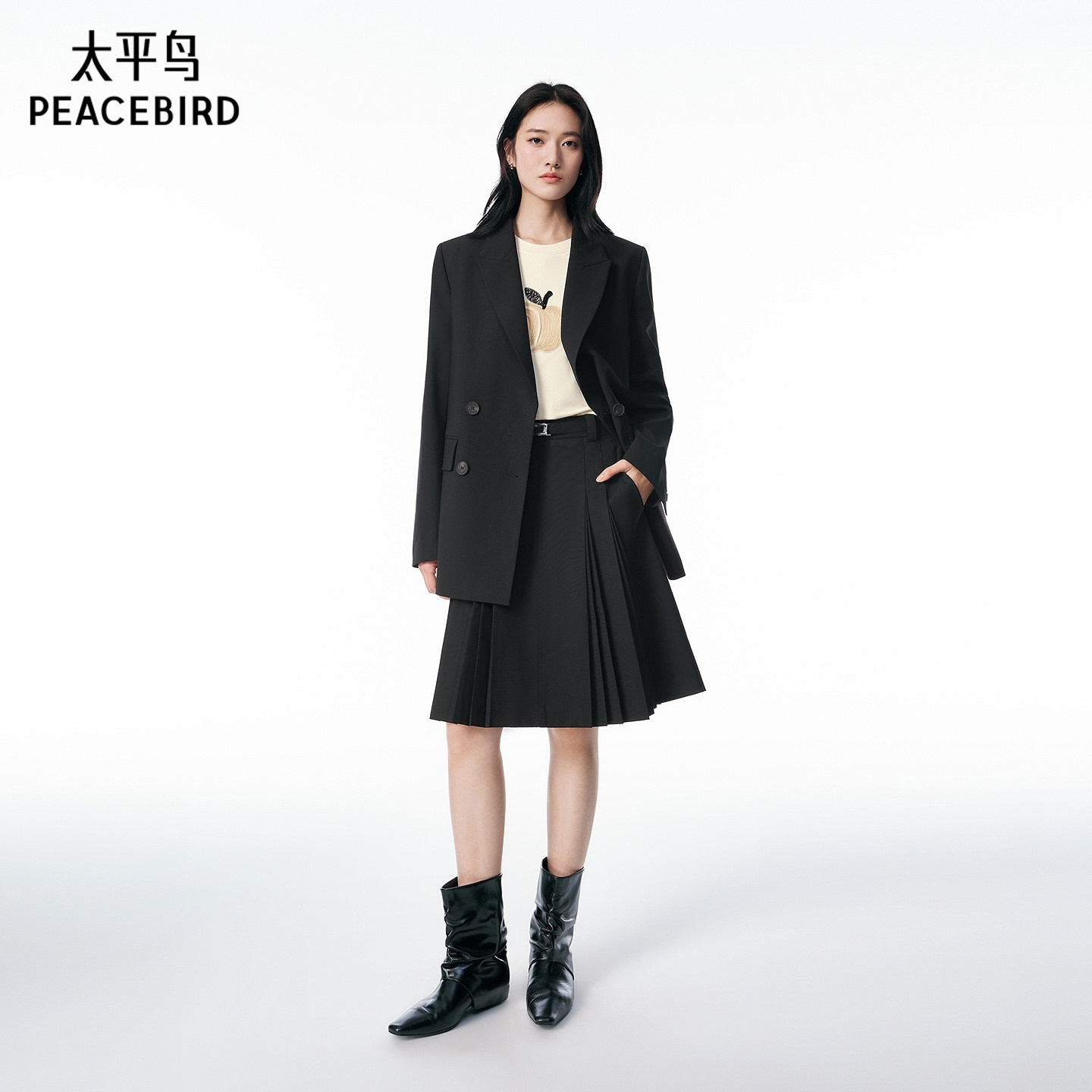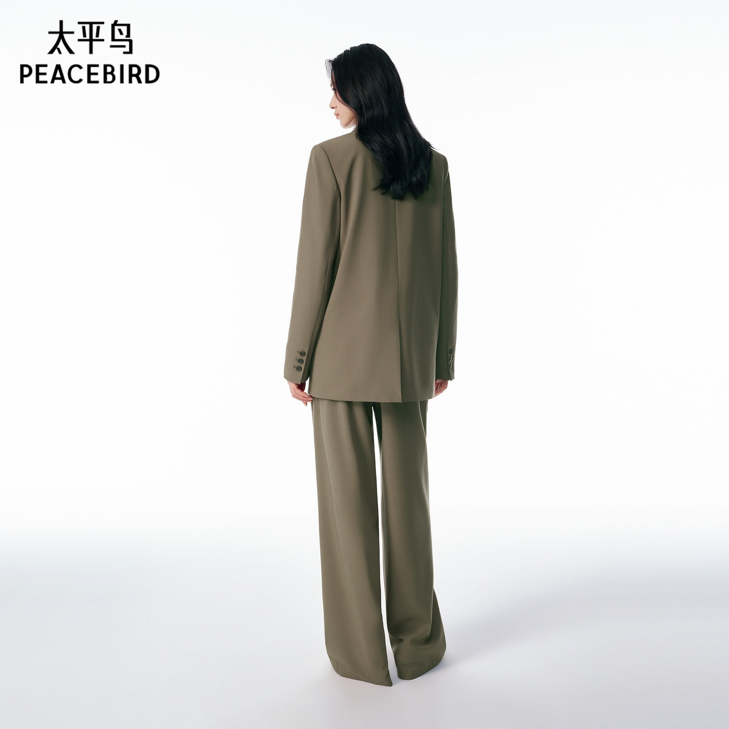 太平鸟双排扣戗驳领西装西裤套装廓系直筒显瘦经典干练精英外套