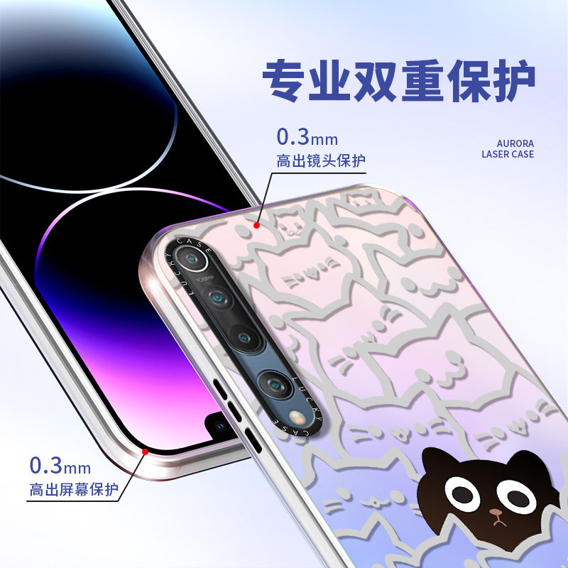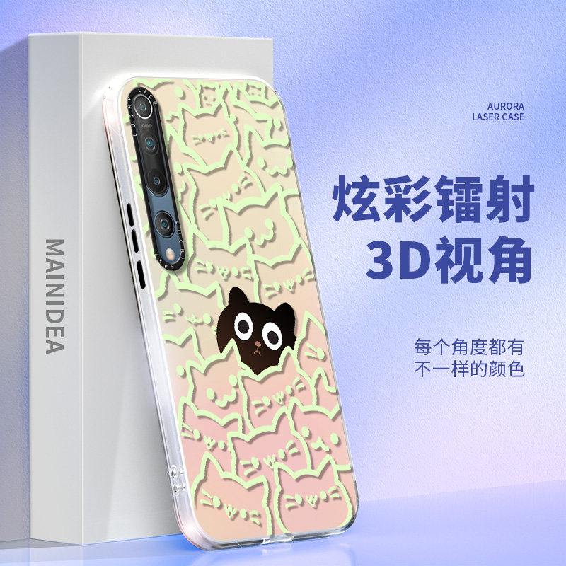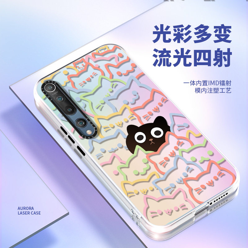 适用于小米10手机壳新款小米10pro极光镭射多彩小猫米10s高级感10青春版套创意mi10全包防摔男女款个性