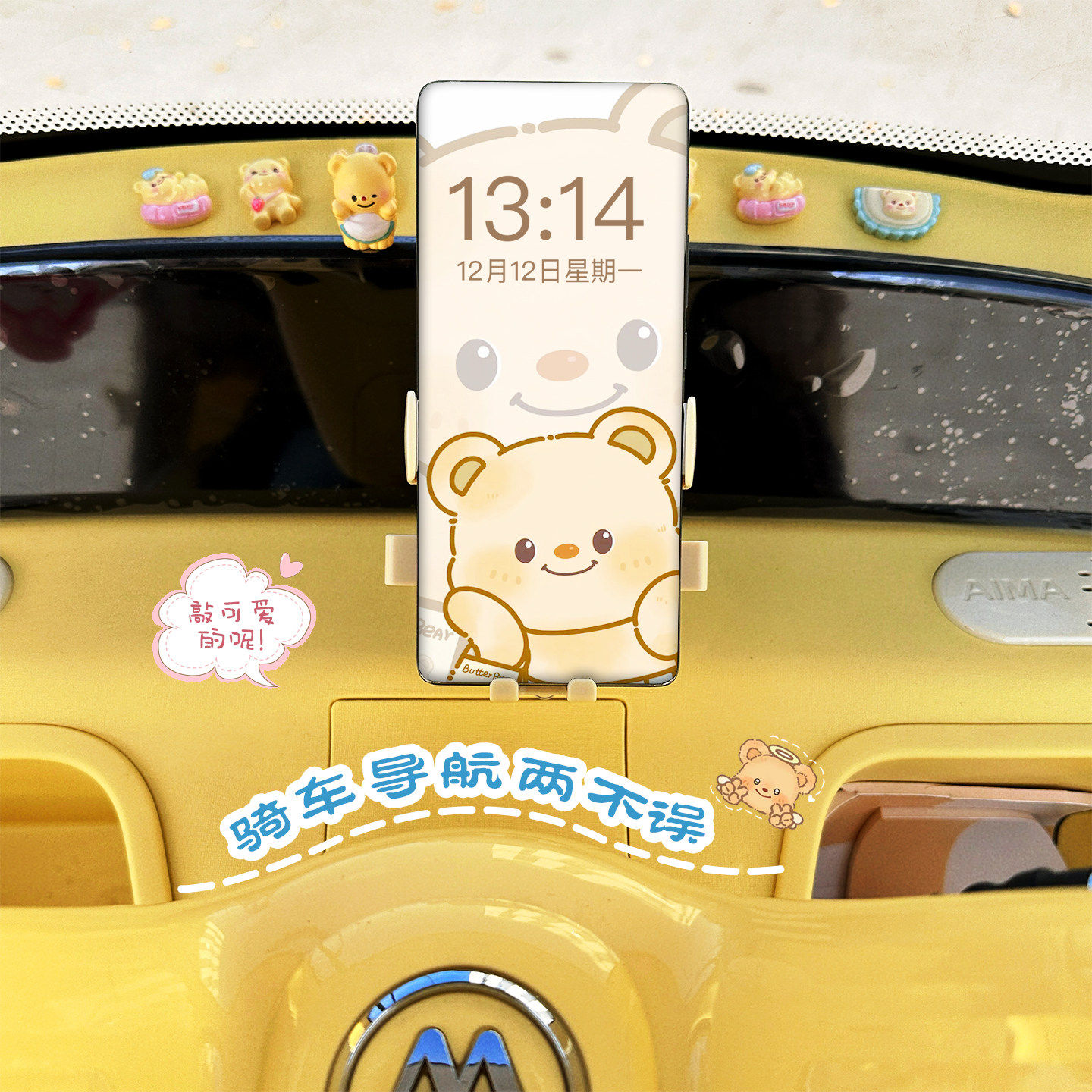 适用爱玛乐维CA510奶油小熊电动三轮车手机架吸盘式导航通用款