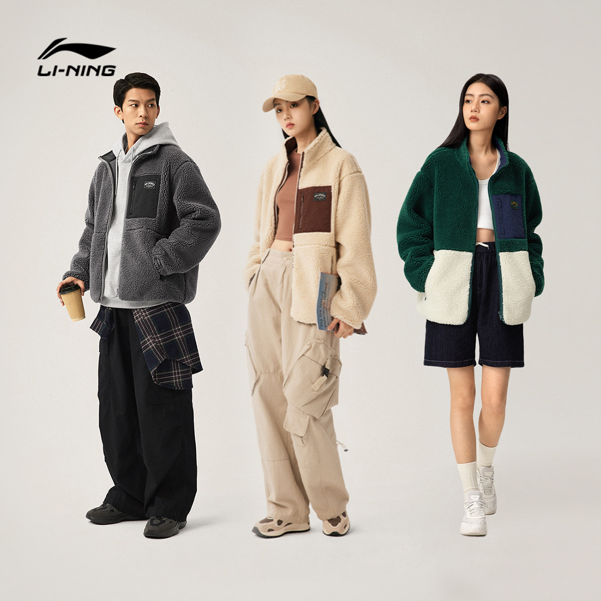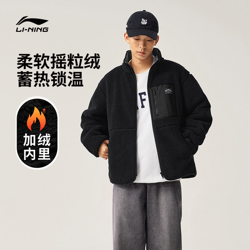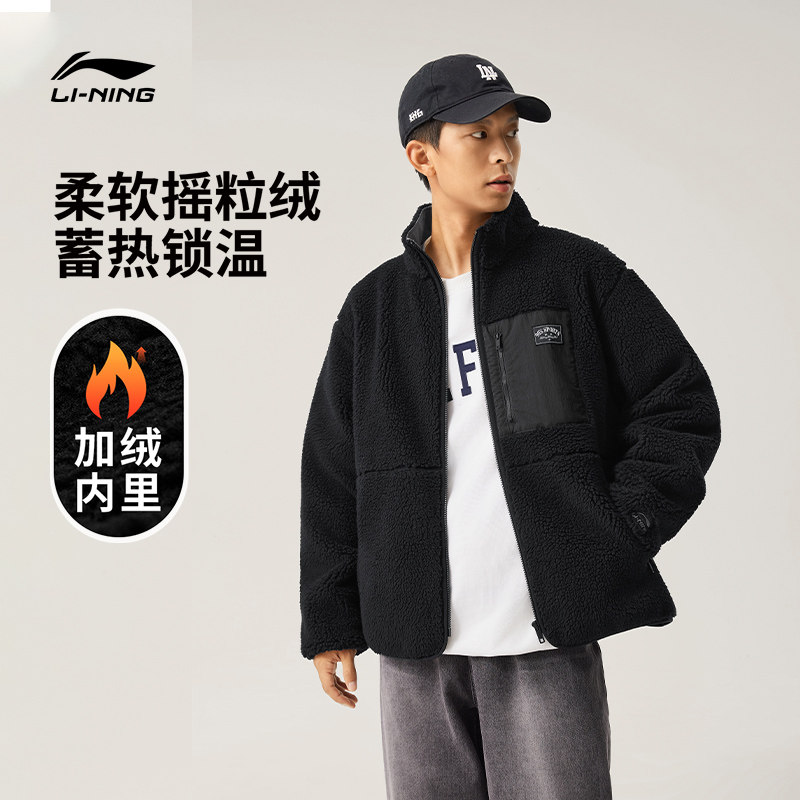 李宁摇粒绒外套男女秋冬新款立领加绒保暖防风情侣运动服开衫上衣