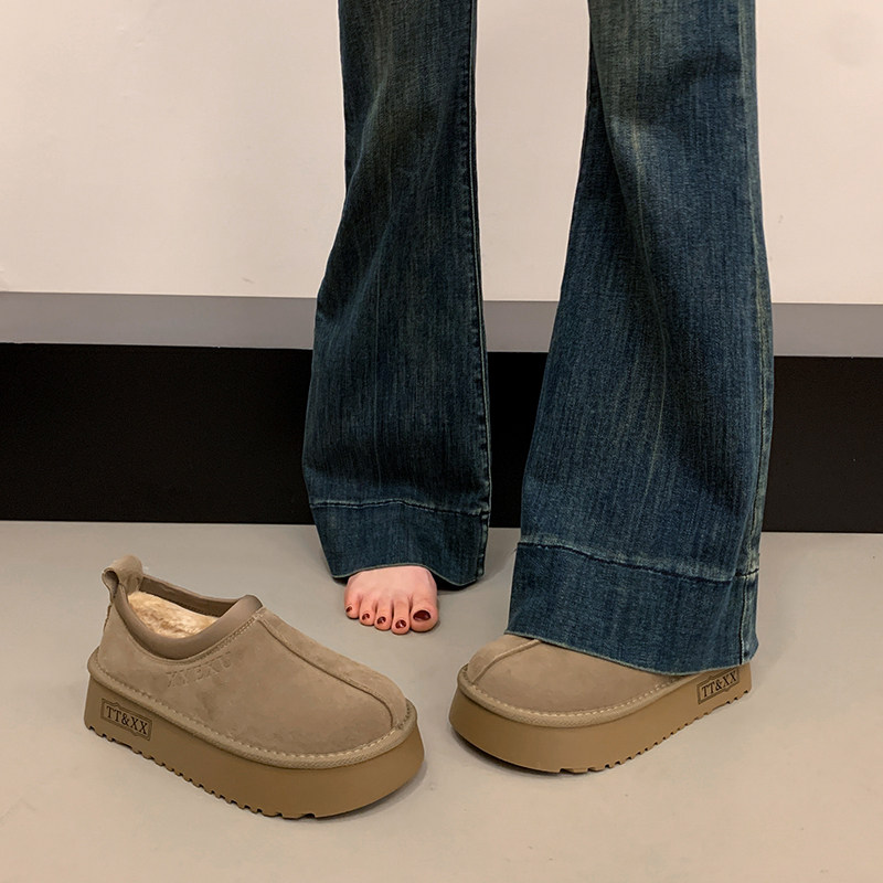 低帮厚底雪地靴女2025新款冬季懒人一脚蹬毛毛棉鞋加绒加厚女鞋子