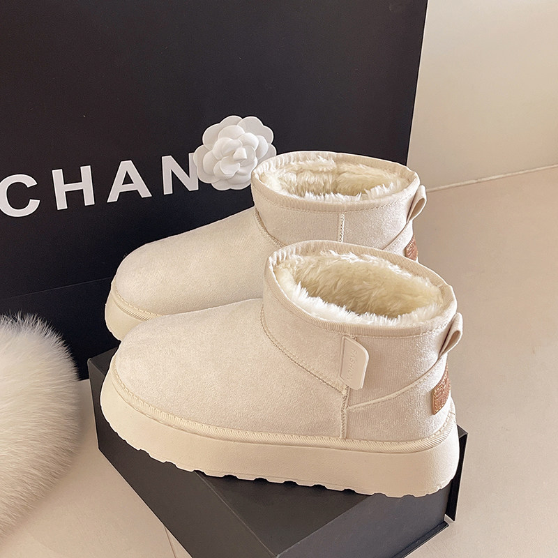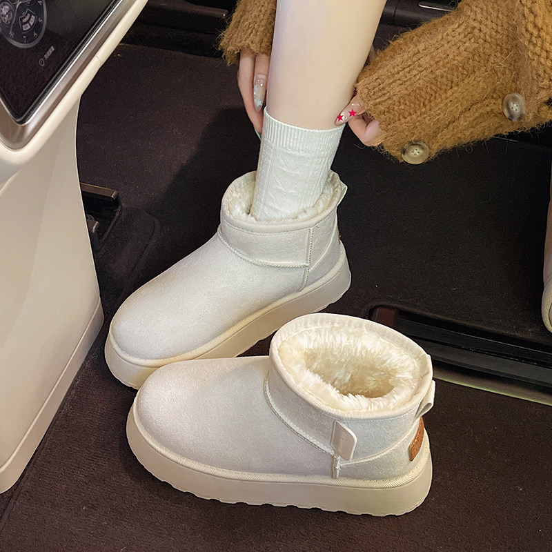 miu家厚底雪地靴女冬季真皮短靴羊毛侧拉链增高厚底加绒毛毛棉鞋