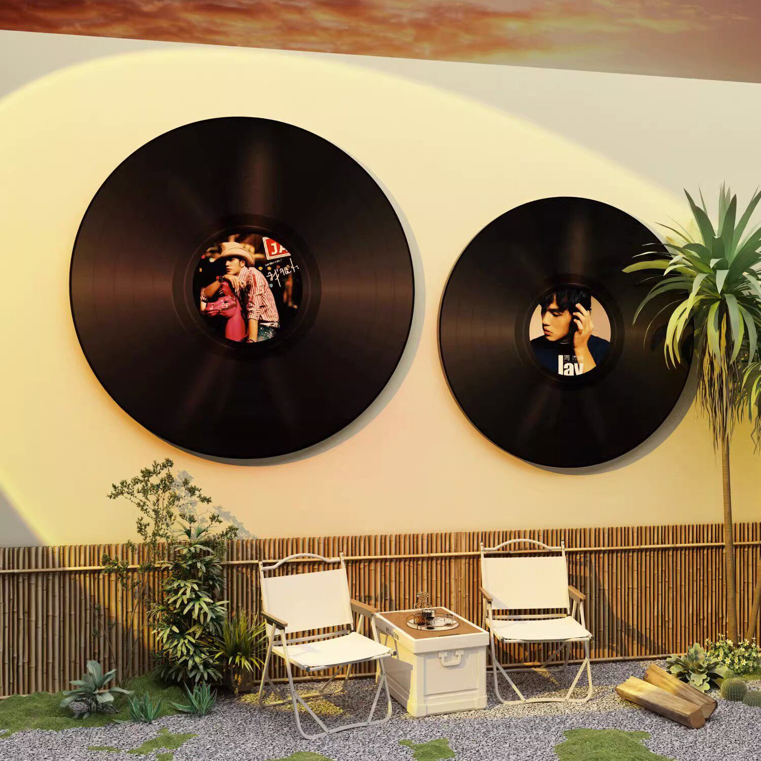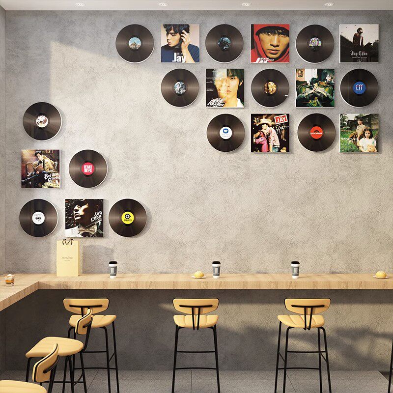 酒吧装饰品场景布置清吧酒馆墙面装饰贴纸挂画周杰伦黑胶唱片海报