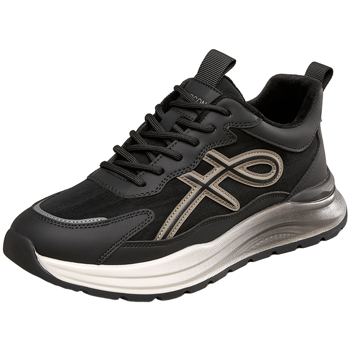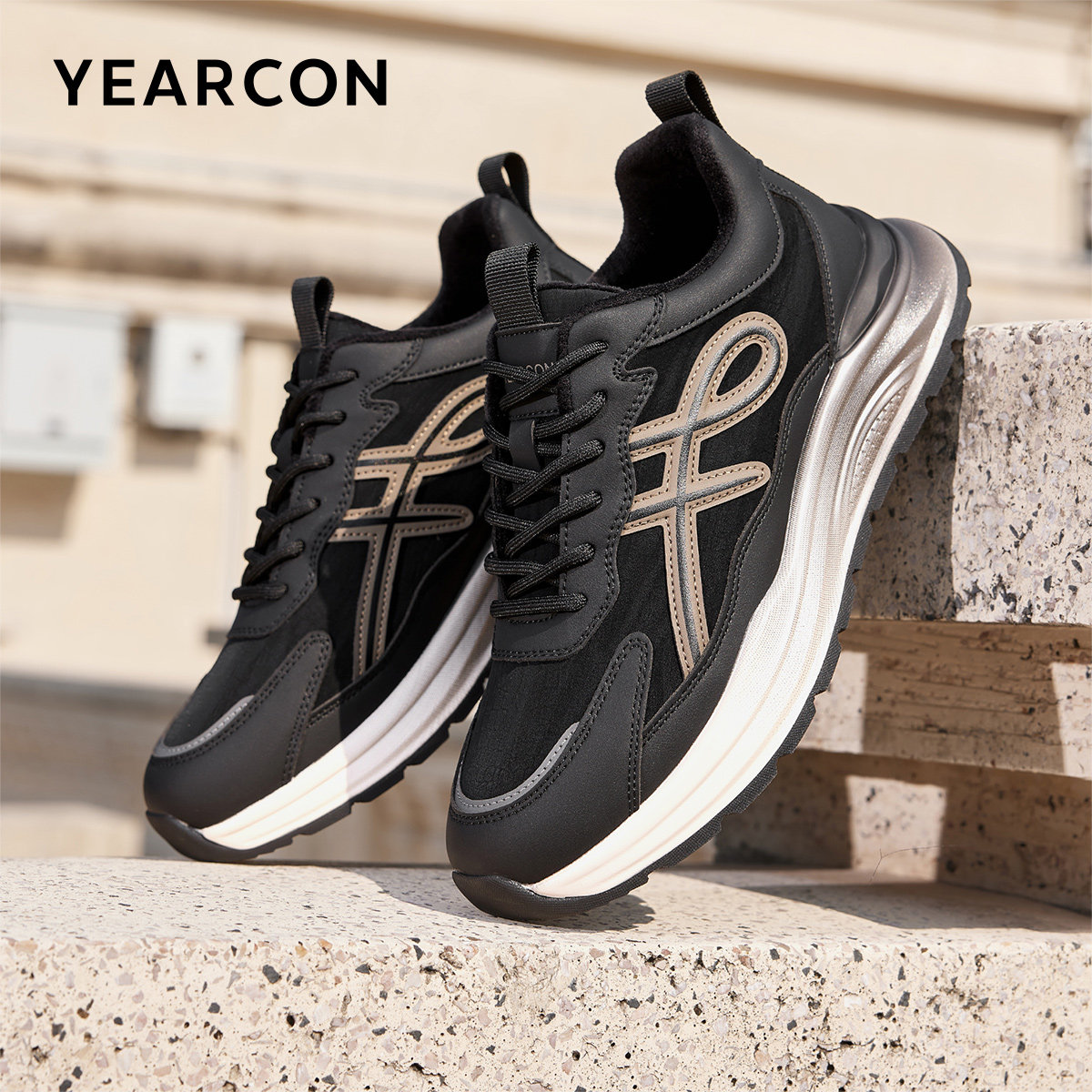 红蜻蜓男鞋秋冬2025新款男士运动休闲鞋网面透气防臭黑色增高鞋子