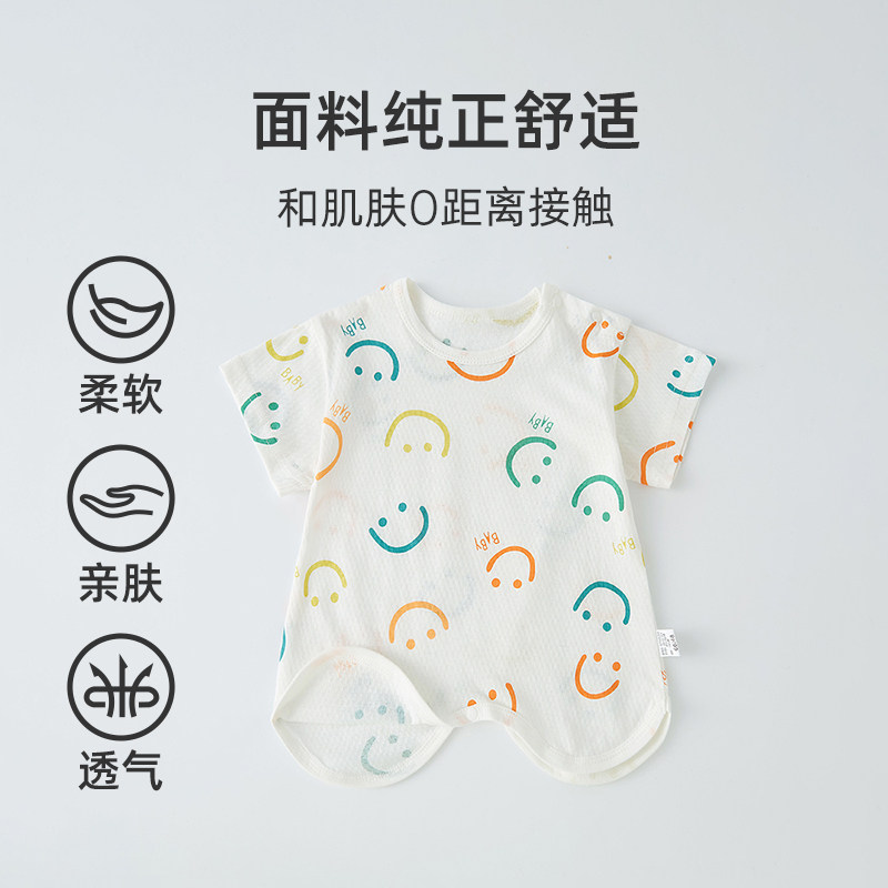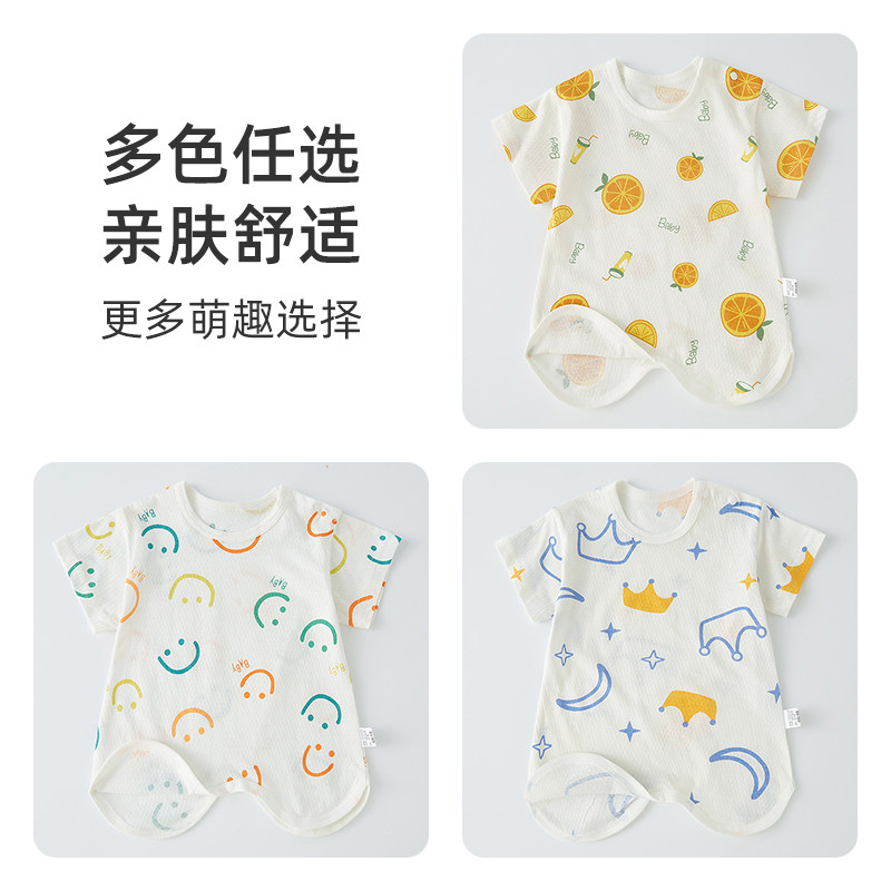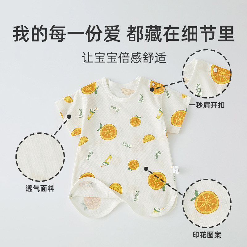 婧麒婴儿睡袍薄款透气纯棉儿童男孩女童睡衣家居服新生儿夏季宝宝