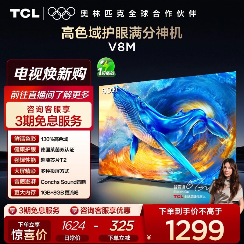 TCL电视 50V8M 50英寸 大内存 护眼网络智能平板电视 官方旗舰店