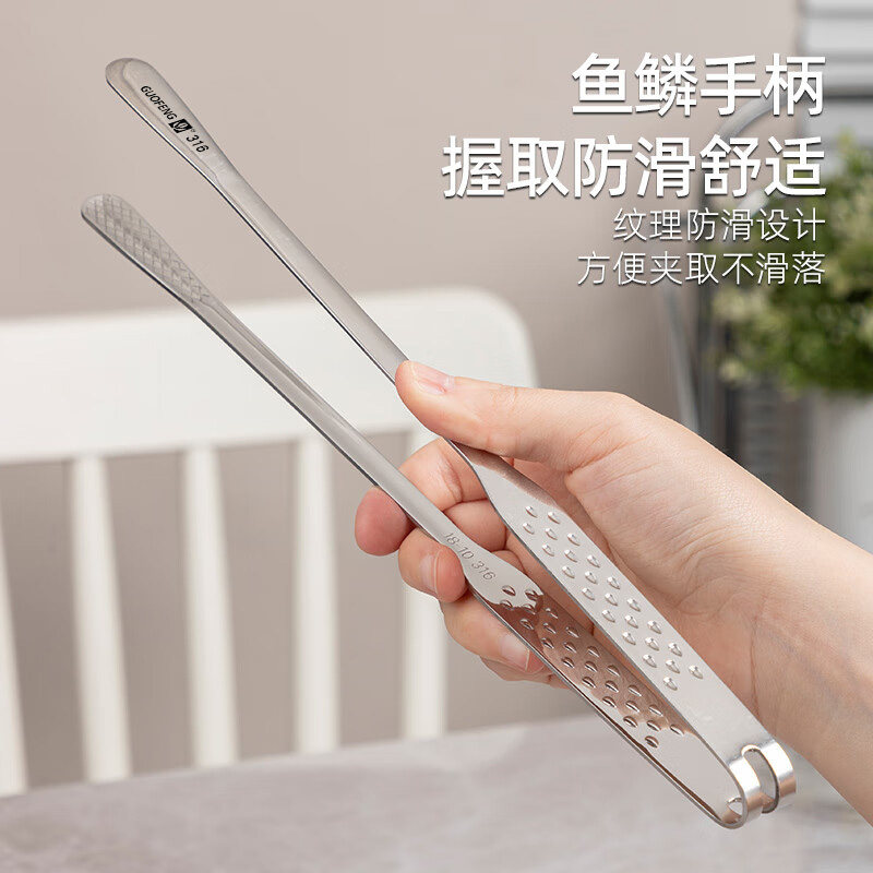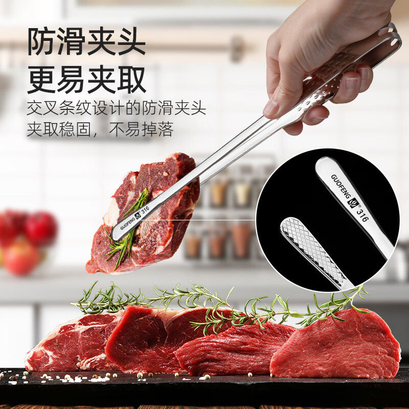 烤肉夹子316不锈钢韩式烧烤夹厨房油炸专用食物食品夹防烫牛排夹L