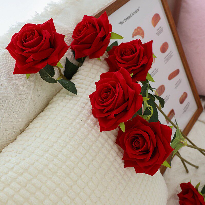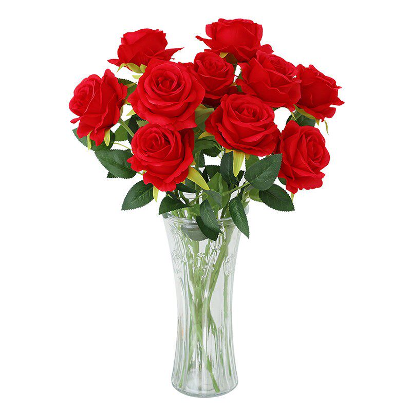 仿真玫瑰花情人节塑料花束家居摆件假花客厅餐桌插花干花摆设装饰