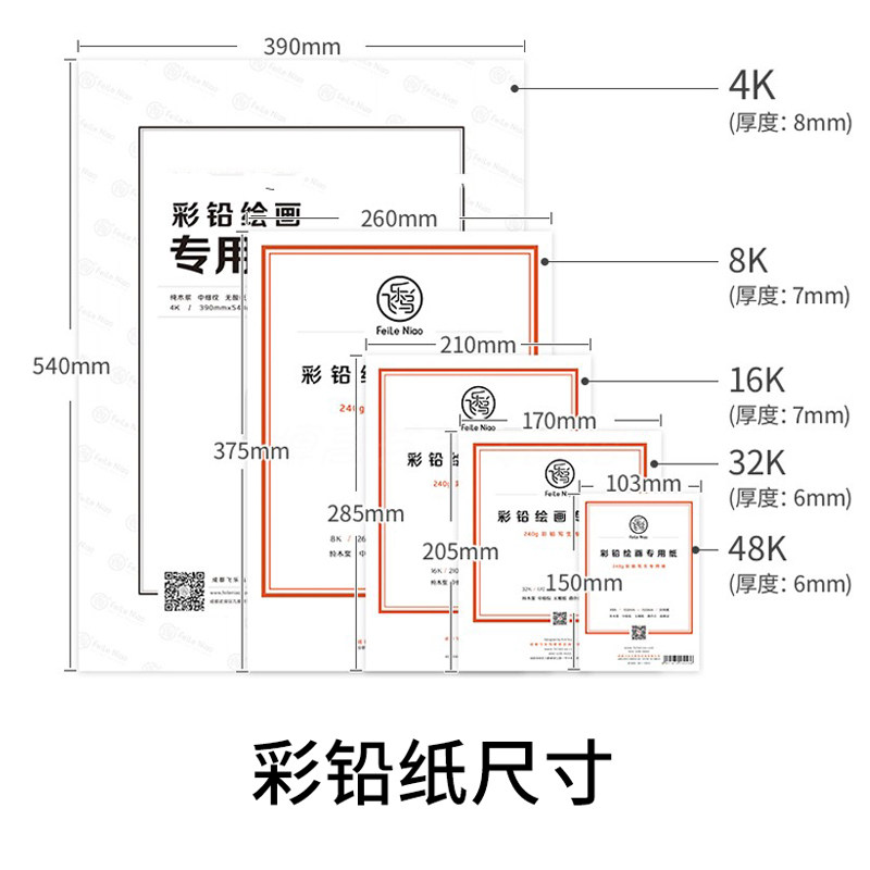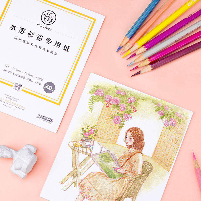 飞乐鸟官方旗舰店 彩铅纸油性彩色铅笔水溶性8开绘画专用画纸16K专业4K细纹铅画学生用手绘素描300g纸