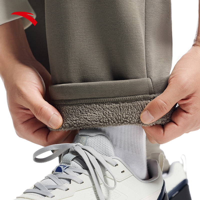 特步加绒卫裤男裤加厚秋冬款保暖缩脚裤直筒休闲裤百搭男子运动裤