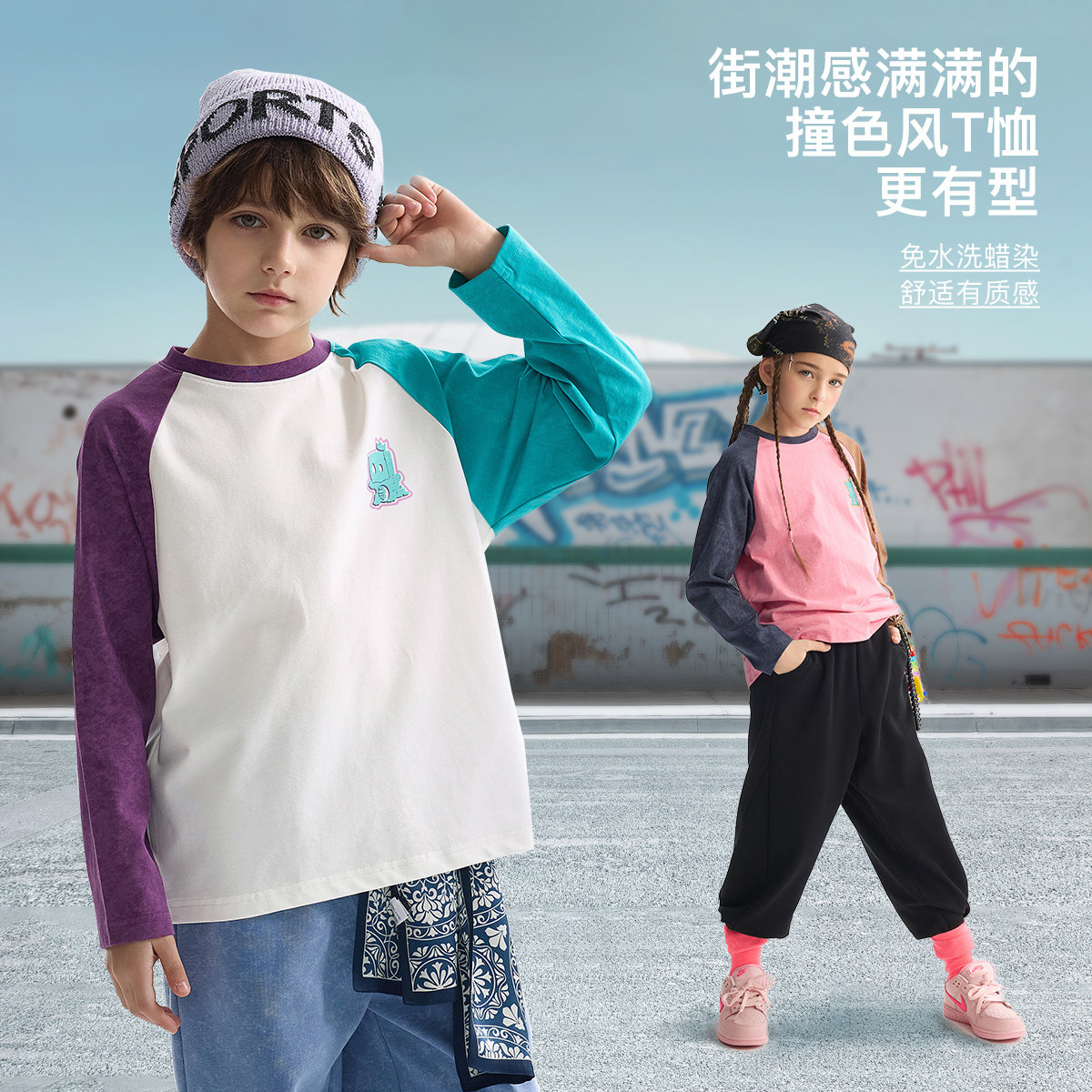 青少年儿童长袖纯棉T恤2025新款男童打底衫女童上衣中大童优贝宜