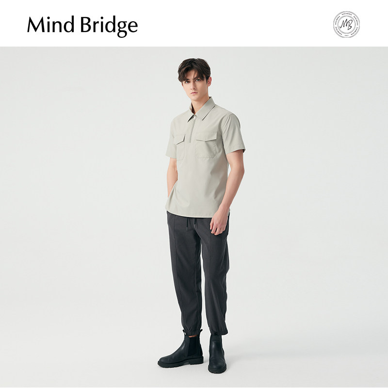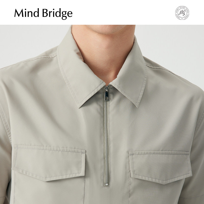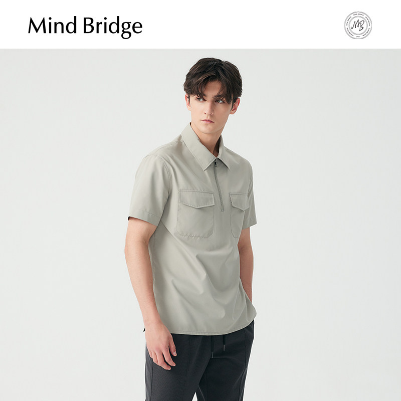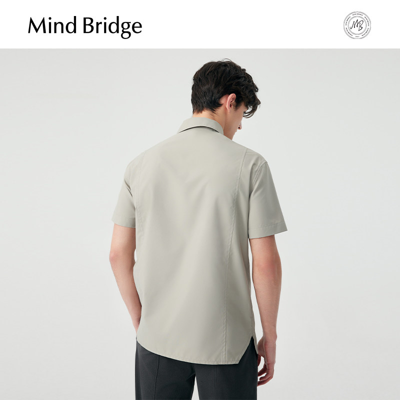 Mind Bridge【三防】男士纯色翻领短袖工装衬衣2025夏半拉链衬衫