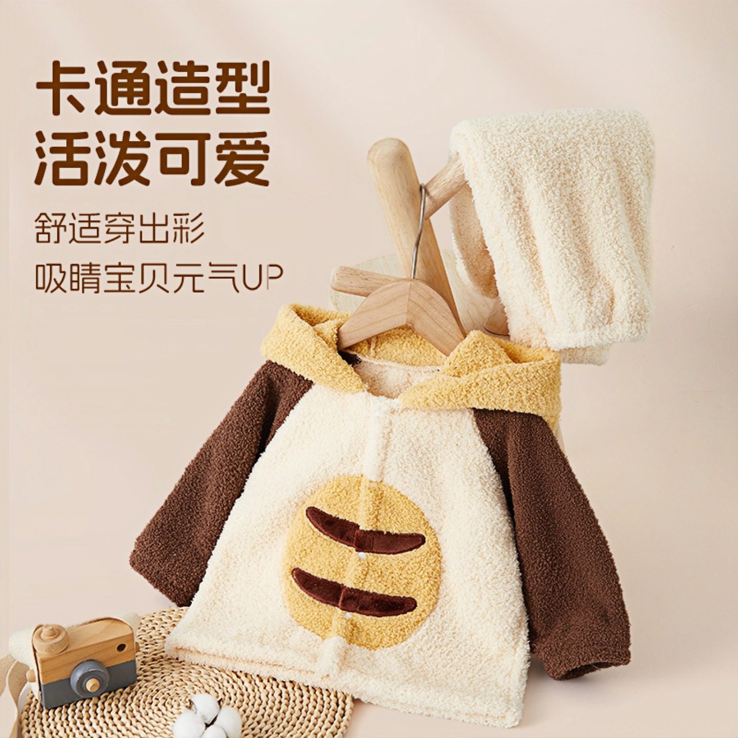 小黑托昵男女童连帽睡衣套装半边绒儿童家居服冬款加绒加厚空调服