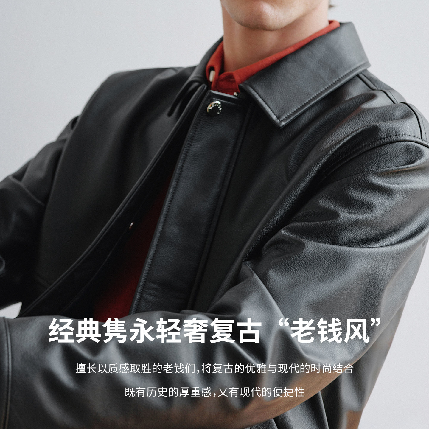 BODYDREAM复古做旧皮衣外套男街头廓形休闲通勤翻领夹克/挺阔抗皱