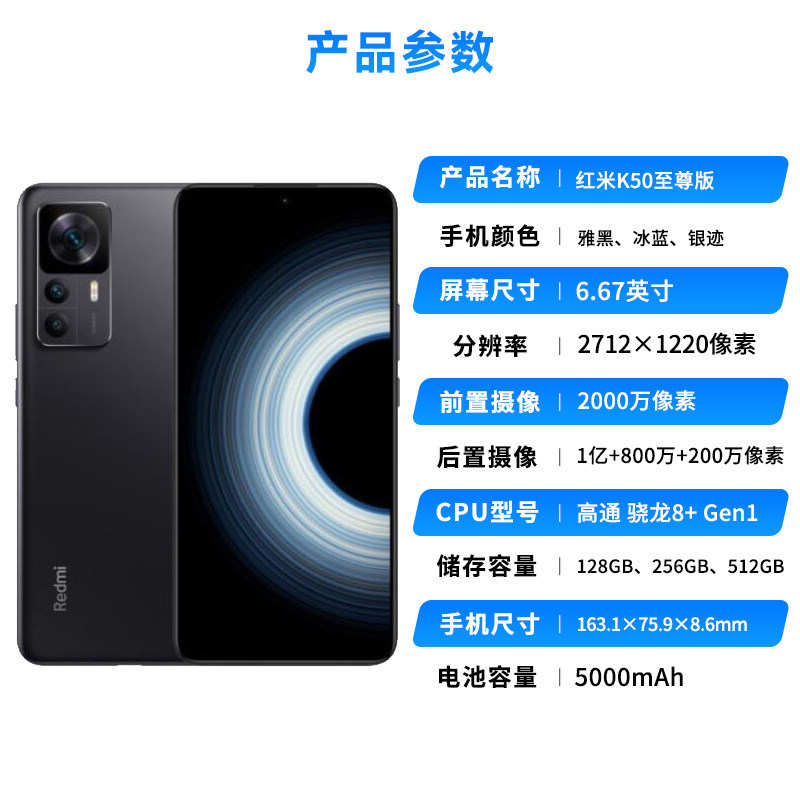 红米 K50 至尊版 OLED柔性直屏 120Hz高刷 高通骁龙8+ Gen1