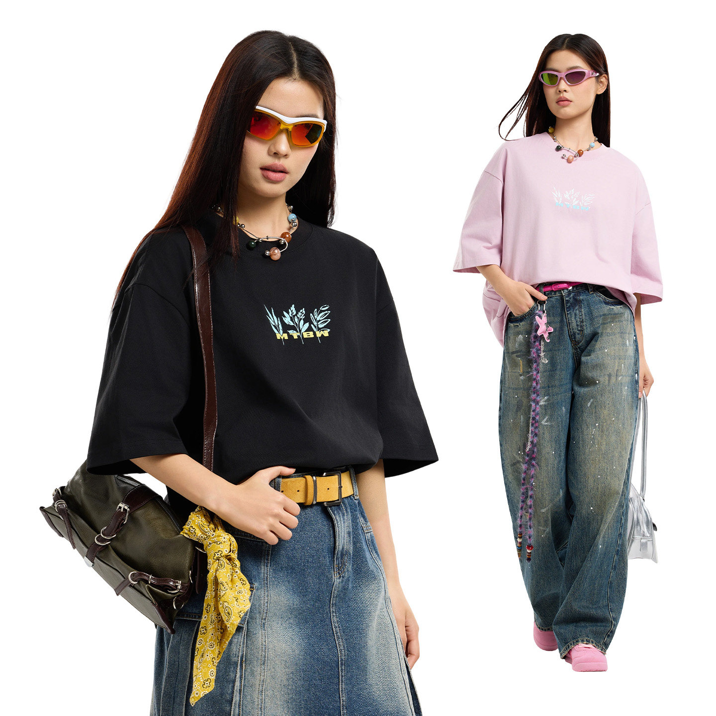 [商场同款]美特斯邦威上衣男女同夏新舒适前胸图案印花短袖T恤