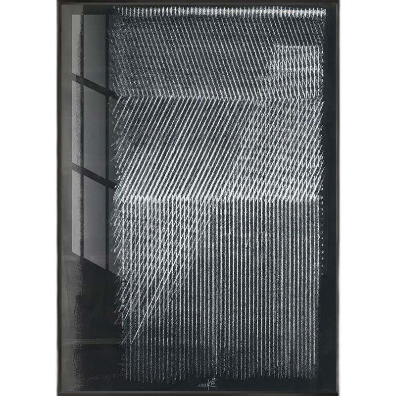 海因茨·马克冷色调抽象线条装饰画黑白工业风样板房后现代大幅画